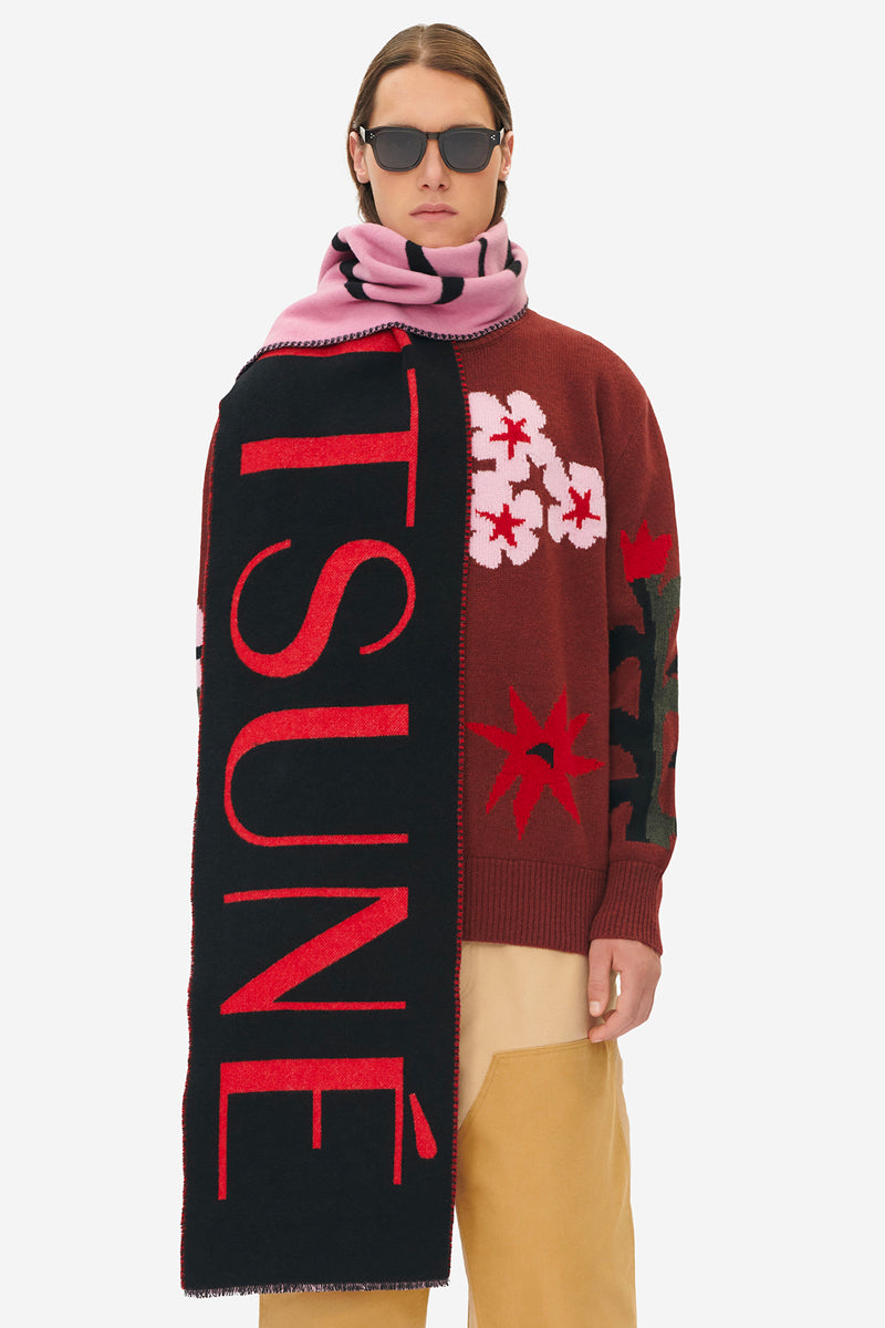 MAISON KITSUNE JACQUARD SCARF PINK RED DESIGN