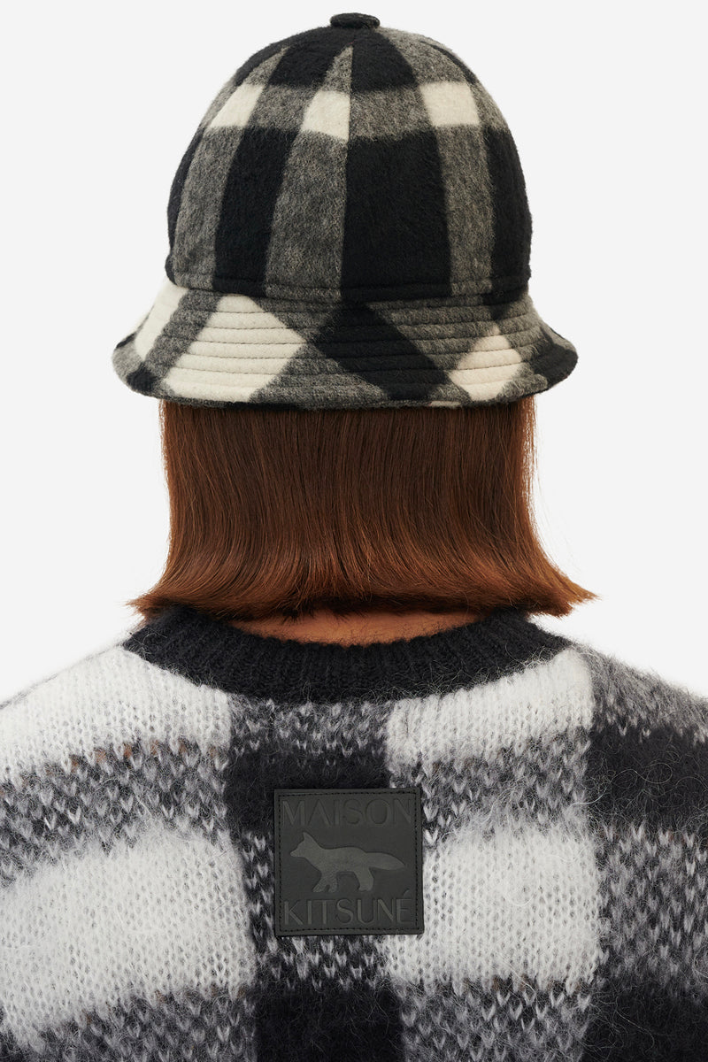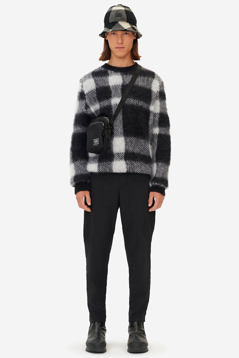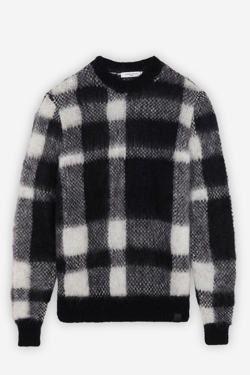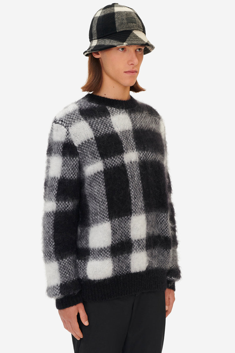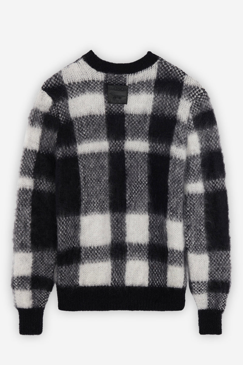 BRUSHED MOHAIR CHECK PULLOVER BLACK WHITE CHECK