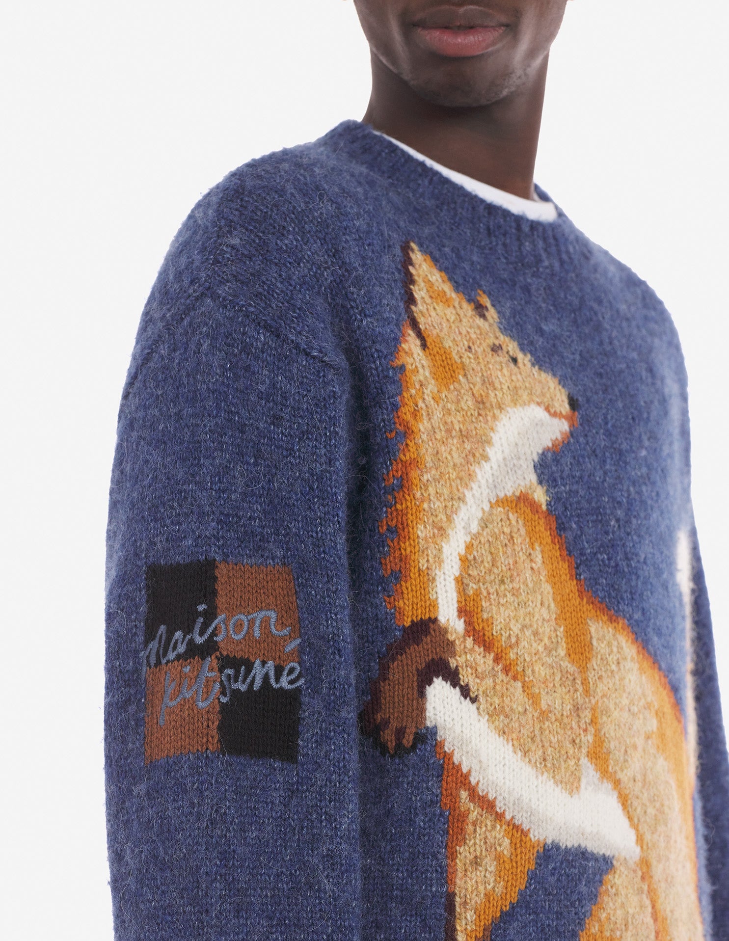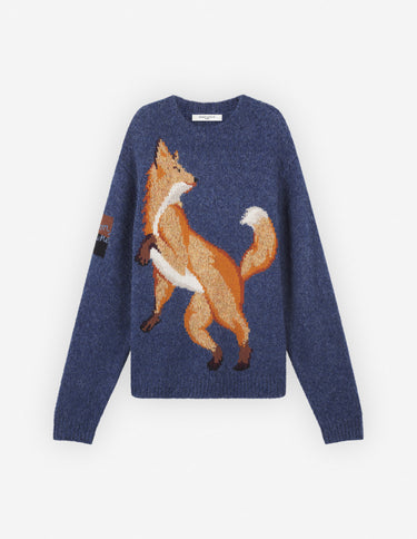 Fox Intarsia Comfort Jumper Denim Blue Melange