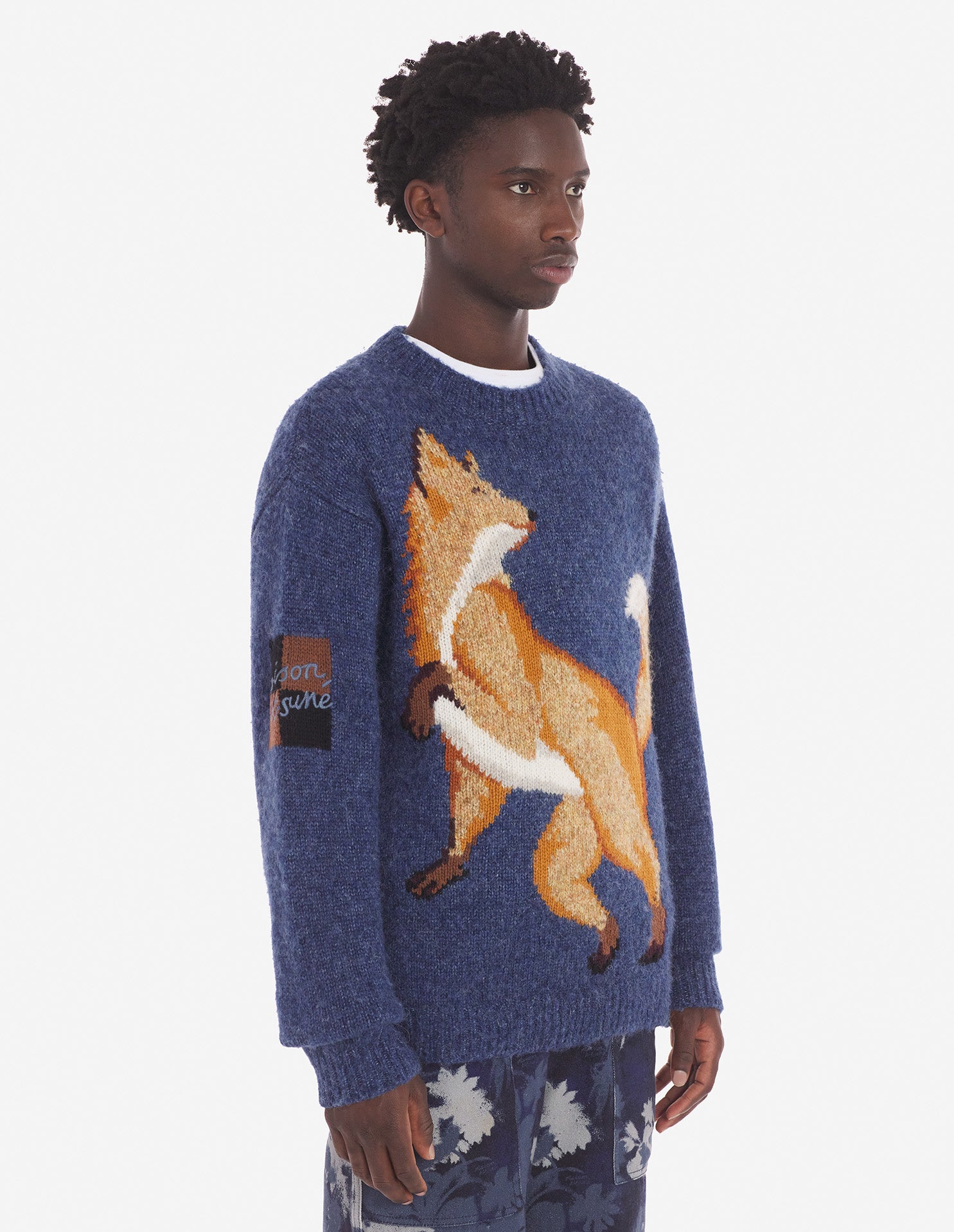Long sleeve wool and alpaca jumper. Comfort cut with Fox on the chest and “Maison Kitsuné” patch on the sleeve.