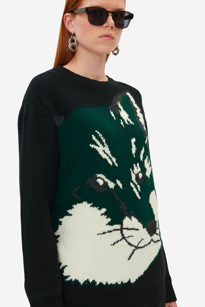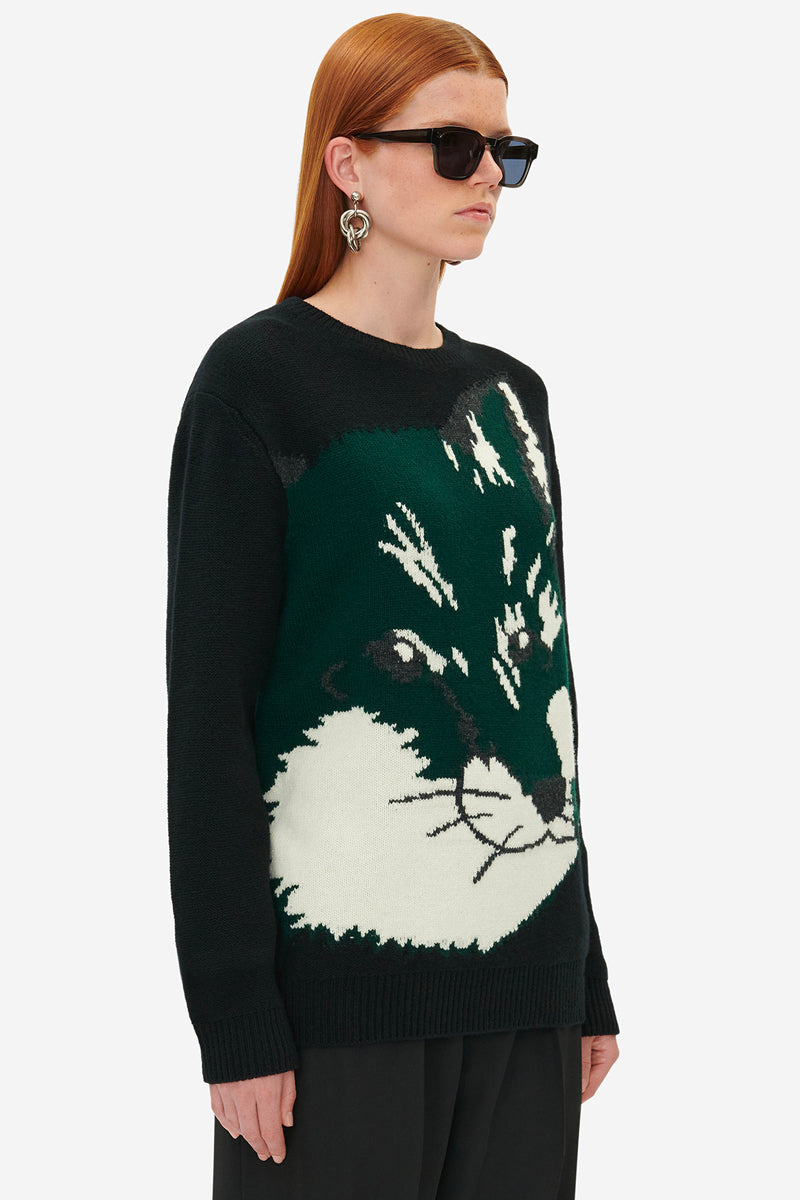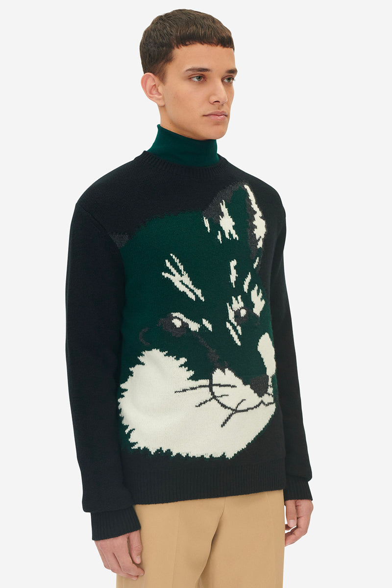 Maison Kitsuné Oversize Fox Head Jacquard Pullover Black