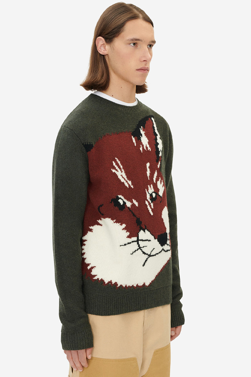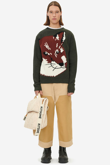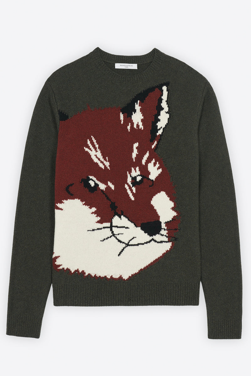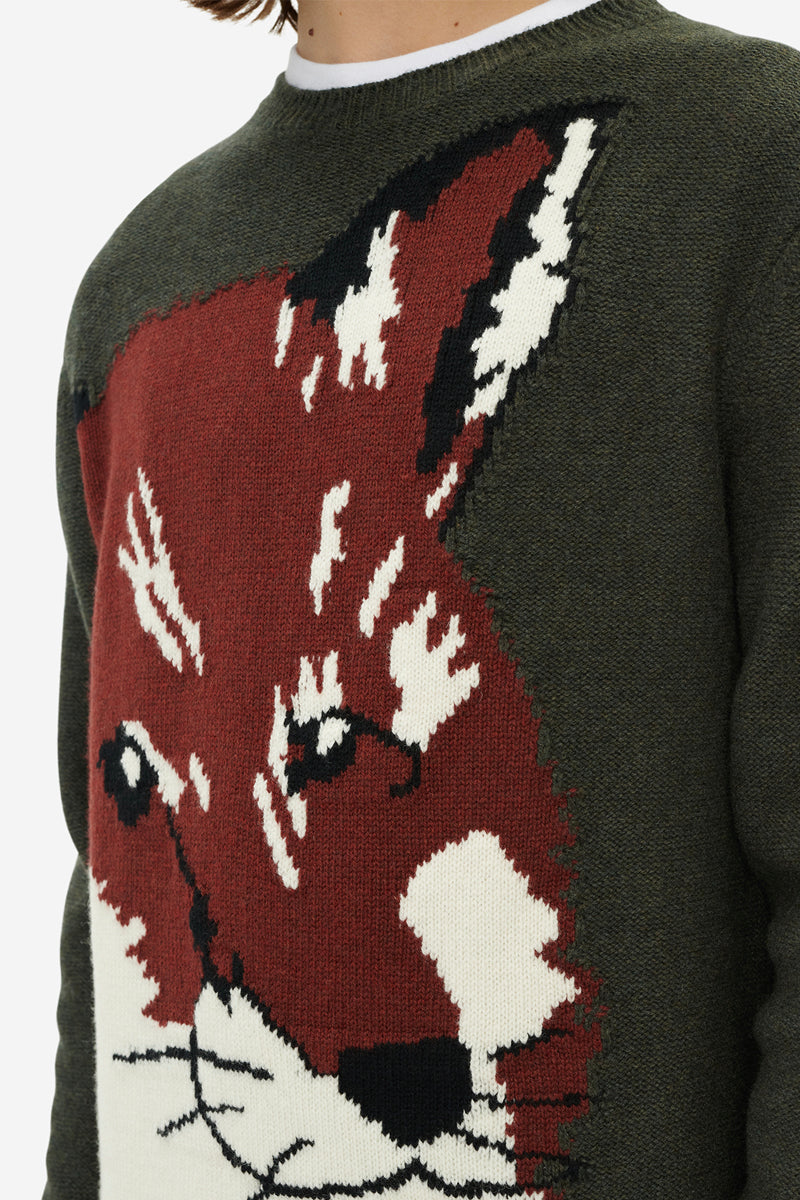 OVERSIZE FOX HEAD JACQUARD PULLOVER KHAKI GREY