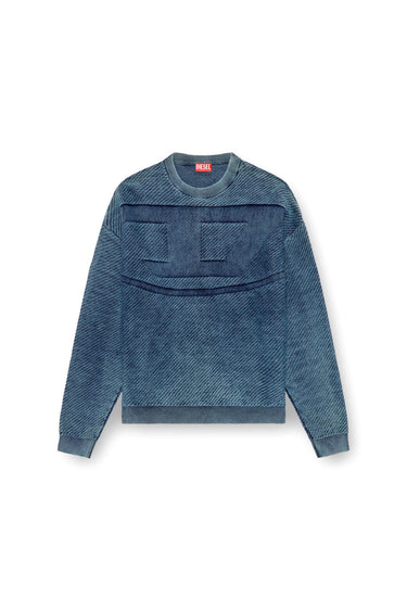 This men’s sweater is cleverly knitted with a zoomed-in Oval D logo and a pattern of lines referencing the diagonal weave of Diesel's DNA fabric – denim. Spun from organic cotton, it has a lived-in blue hue and relaxed dropped shoulders.