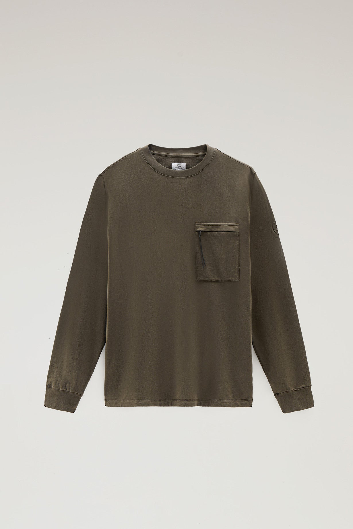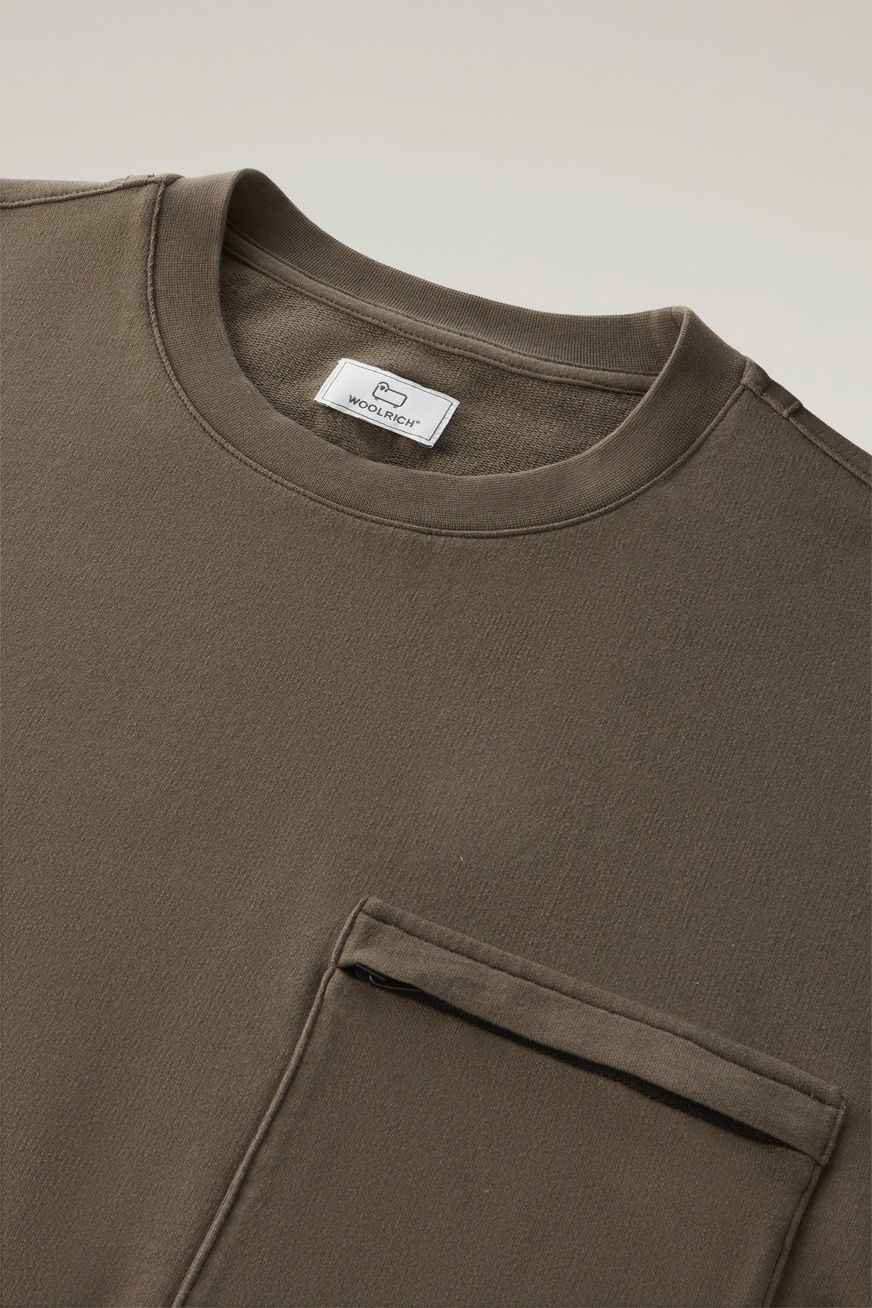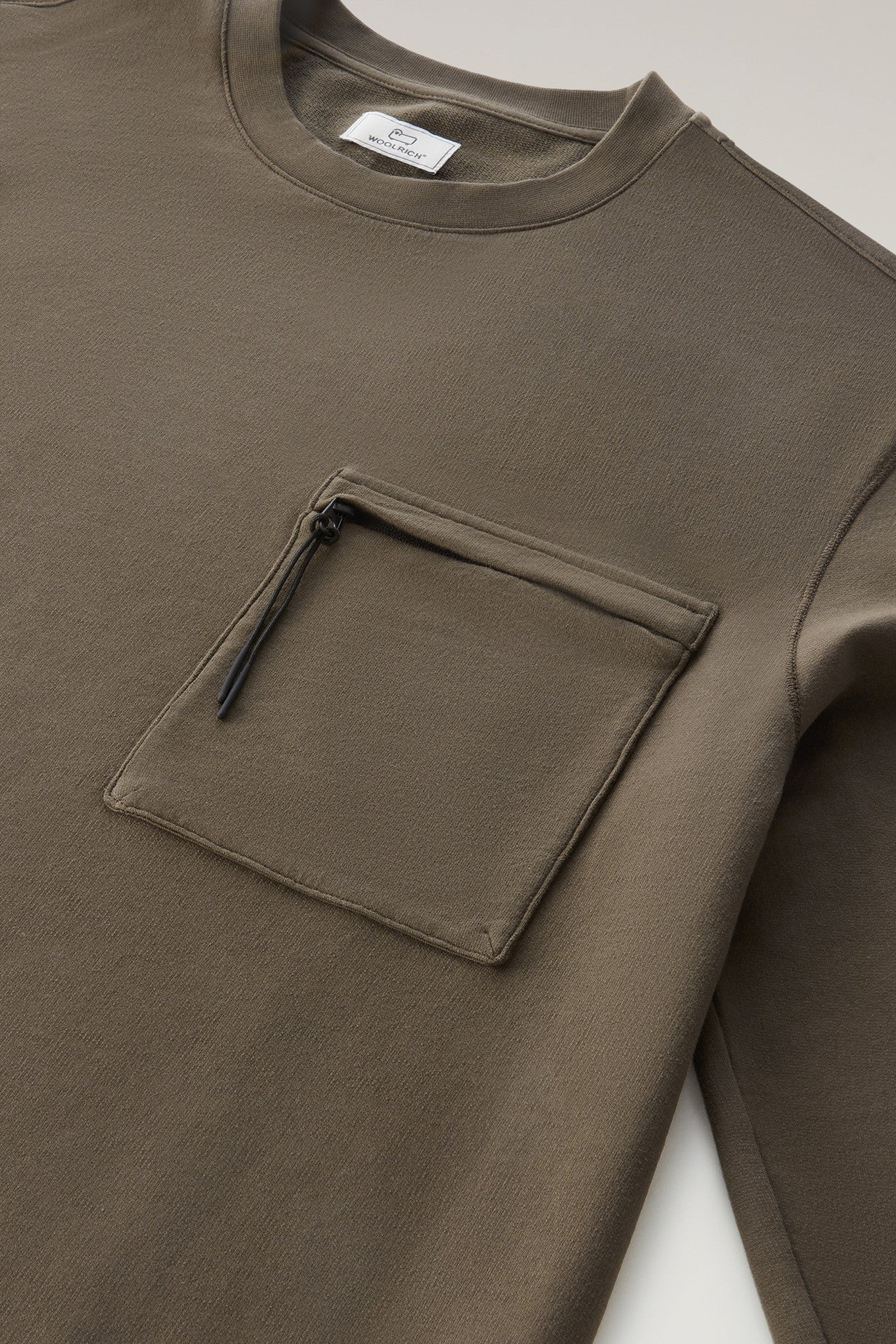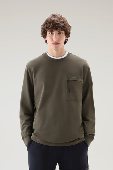 Crewneck In Pure Cotton Fleece With Zip Pocket Dark Green