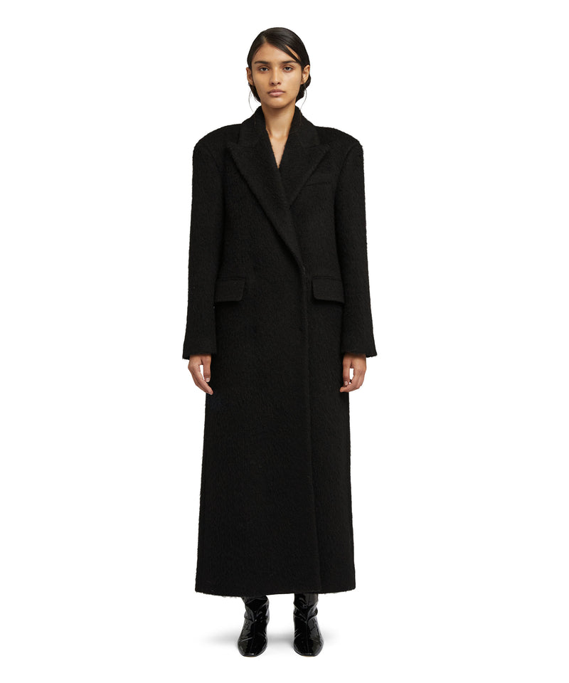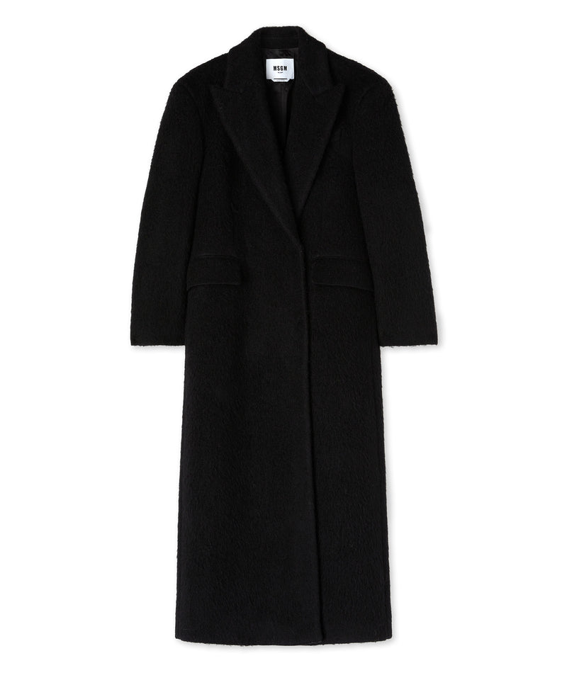 The MSGM woman dresses in stars, showing off mini corset dresses in scuba satin or pinstriped suits woven with lurex threads. Coat with lapels and long sleeves, front double-breasted closure, front flapped pockets, rear vent.