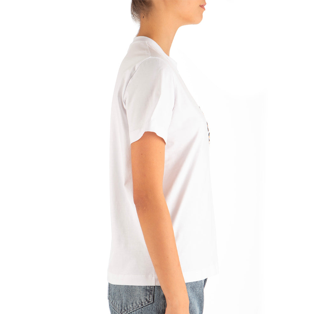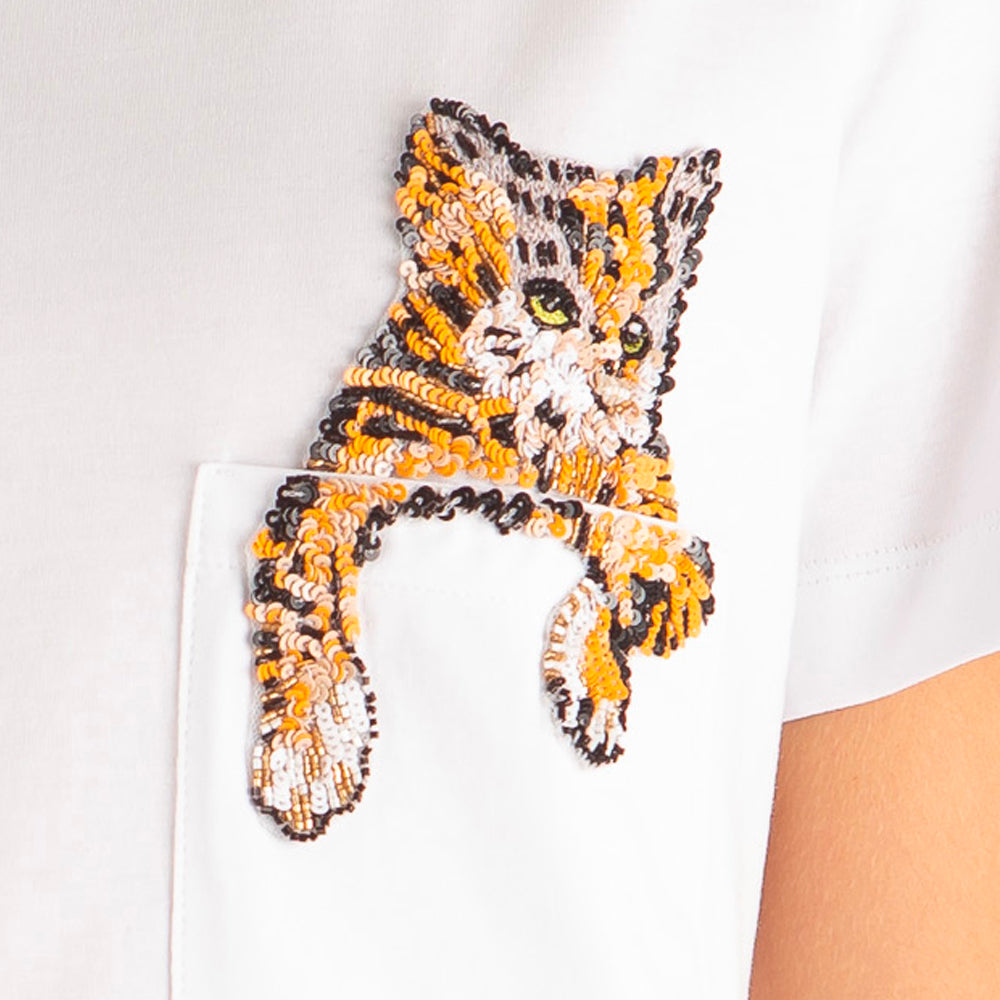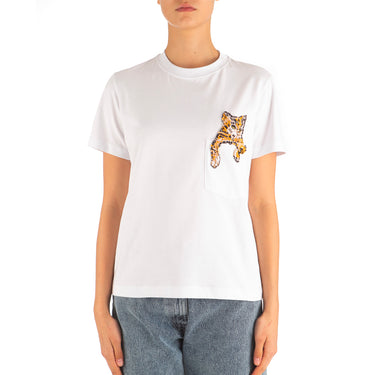 Women's Cat On Pocket Embroidery T-shirt White