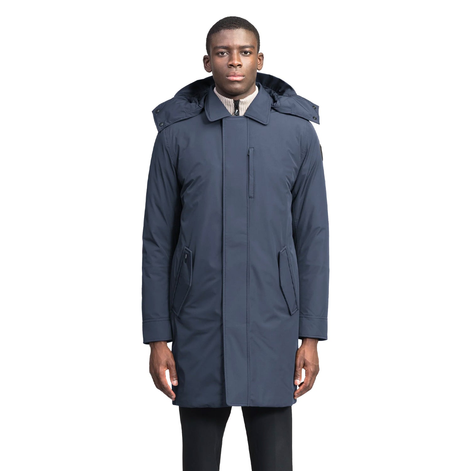 Power dressing for the technically inclined. The Nord is the ultimate trench coat for the modern day professional. Offering all the embellishments of a great trench without compromising our advanced technical DNA. Featuring a Premium 3-Ply Micro Denier fabrication with 4-Way Stretch fabric at under sleeve. Finished with premium Canadian White Duck Down insulation in our custom Nobis quilted lining for warmth.