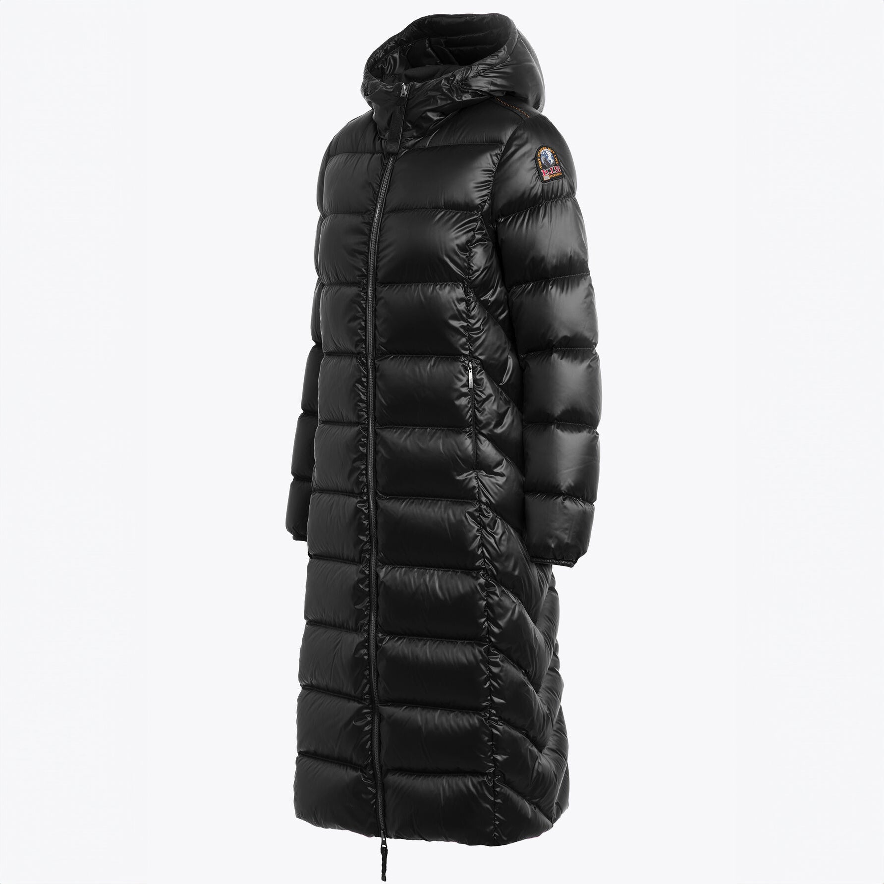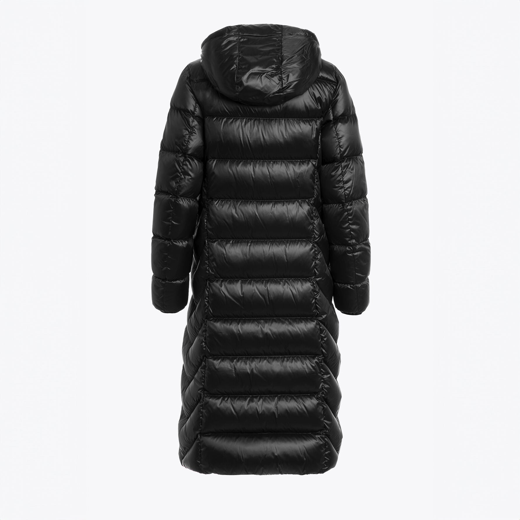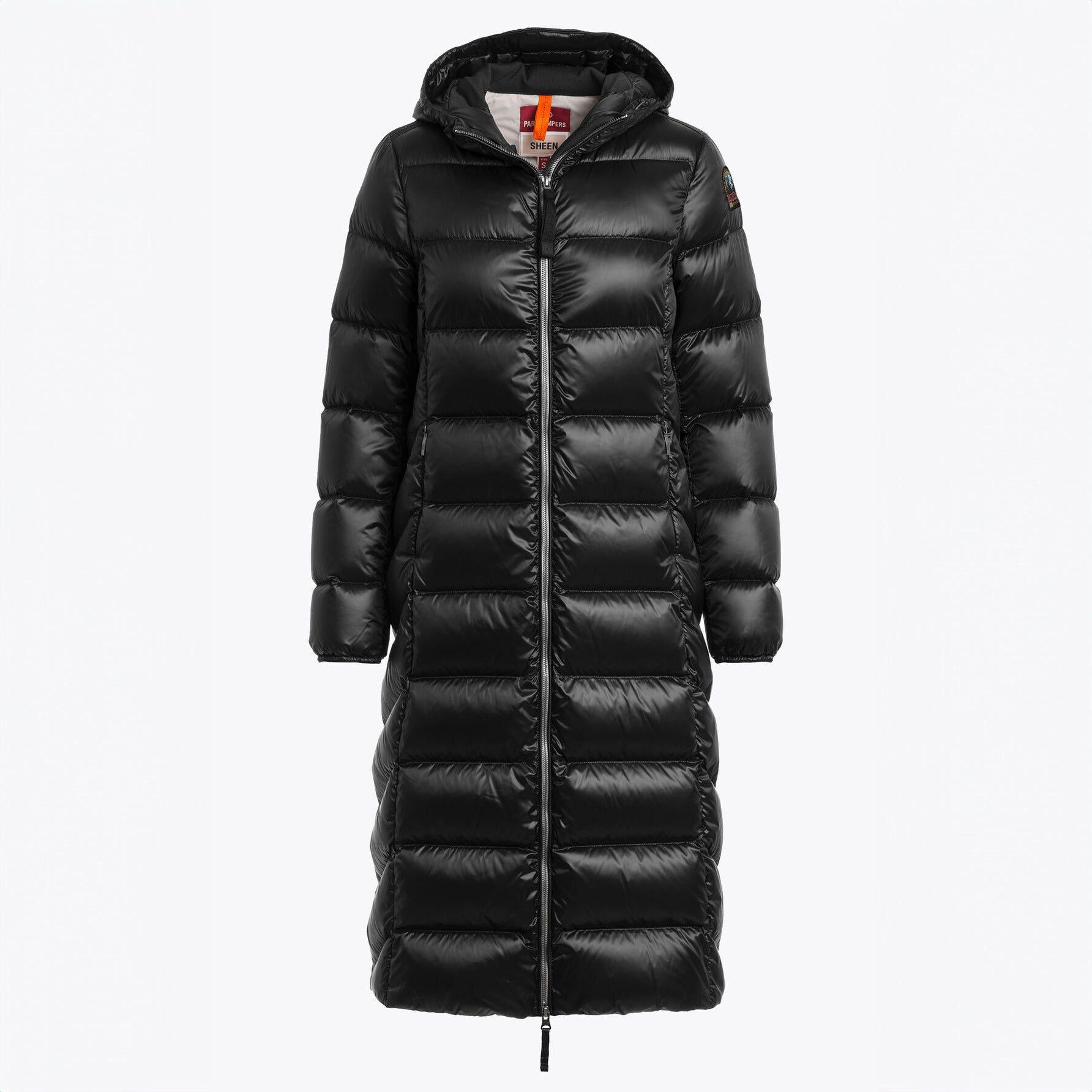 eah is an extra-long quilted jacket with a hood, from the Sheen down-filled family, made of polyester-nylon twill. Simple in its design, this down jacket is a must-have in your wardrobe.