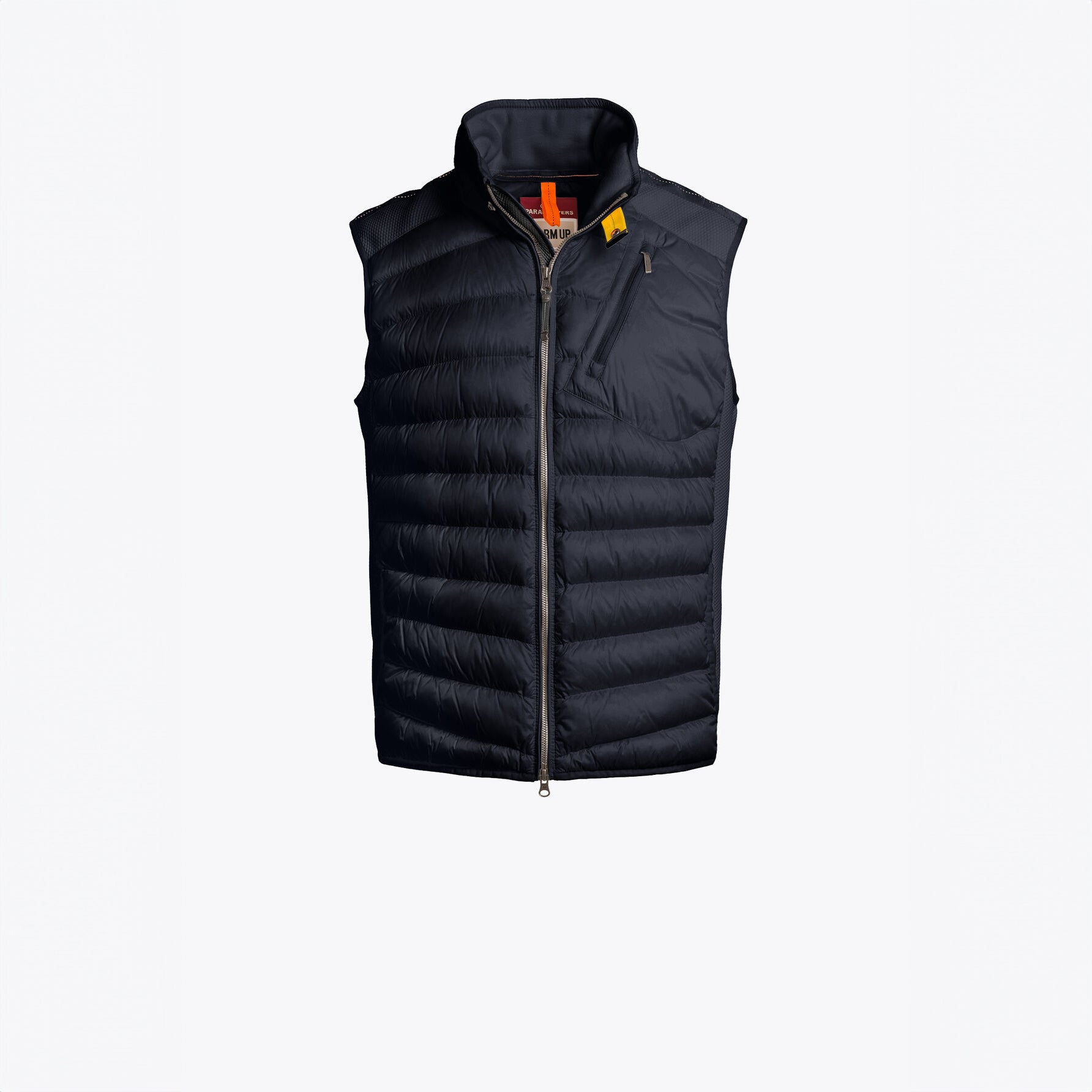 Zavier is a hybrid vest, from the iconic Warm Up family, combining a stretch polyester honeycomb knit with a down-filled semi-shiny nylon taffeta. Sporty and versatile, it is available in a wide range of colors.