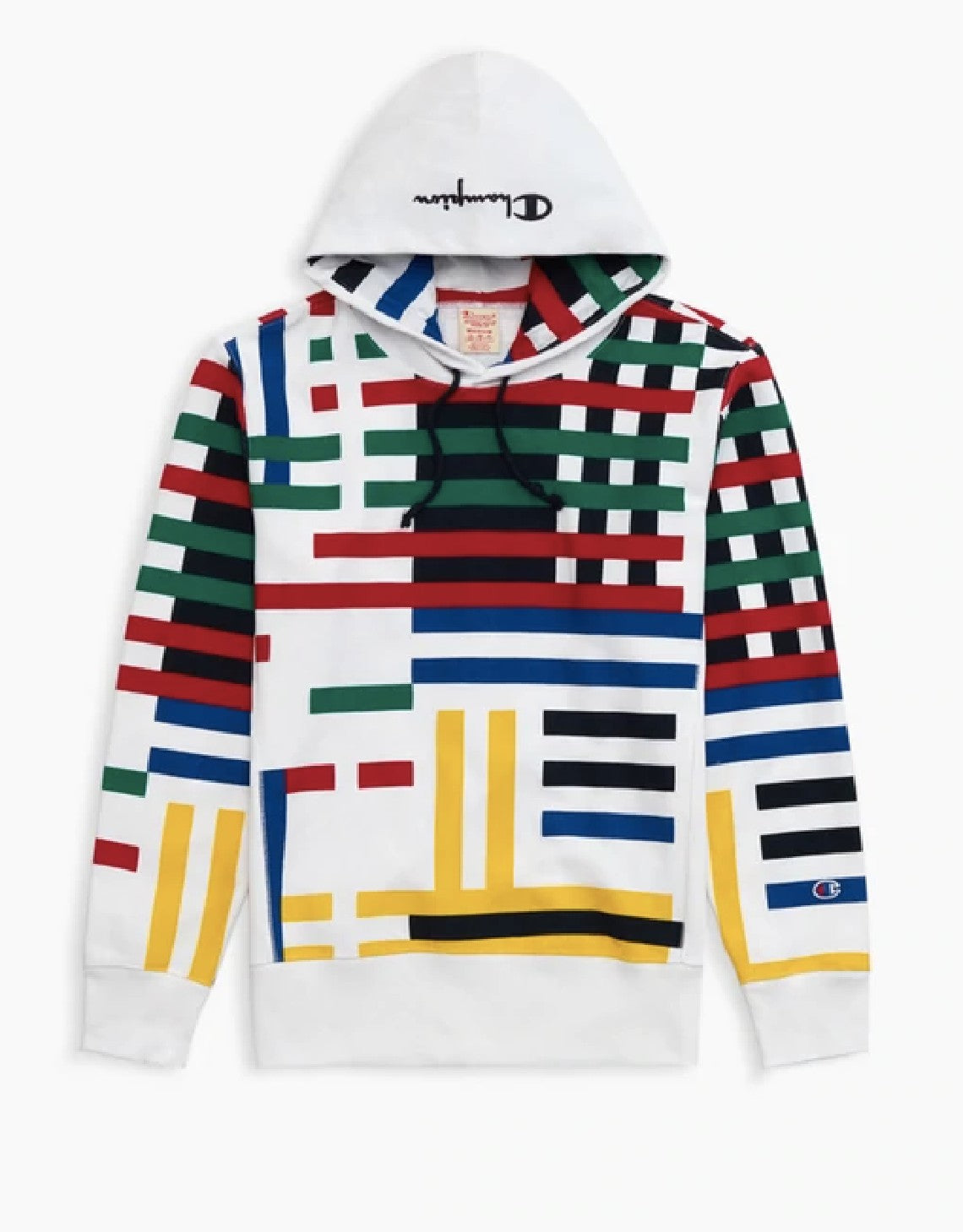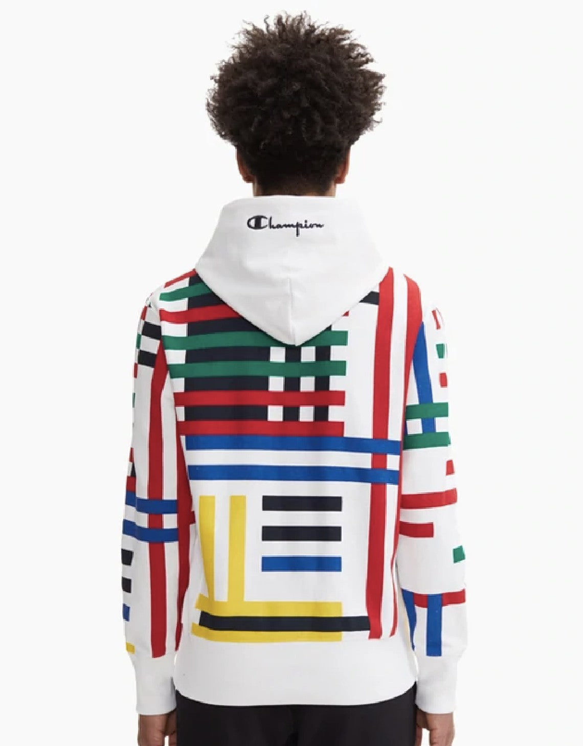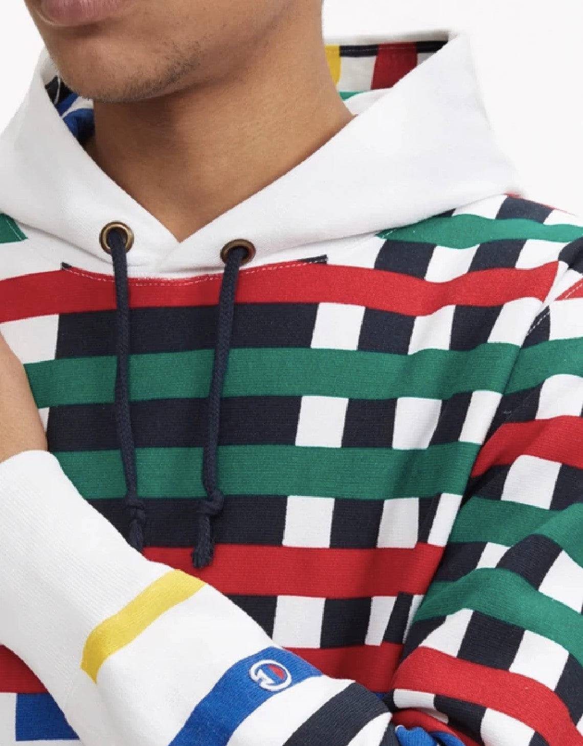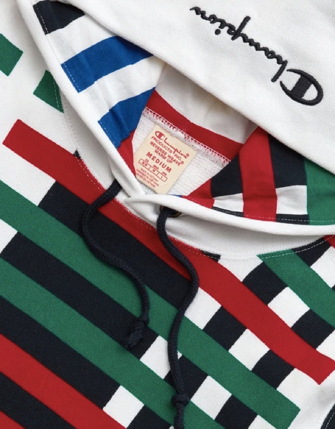 Champion Europe Graphic Stripe Reverse Weave Hoodie Chalk White