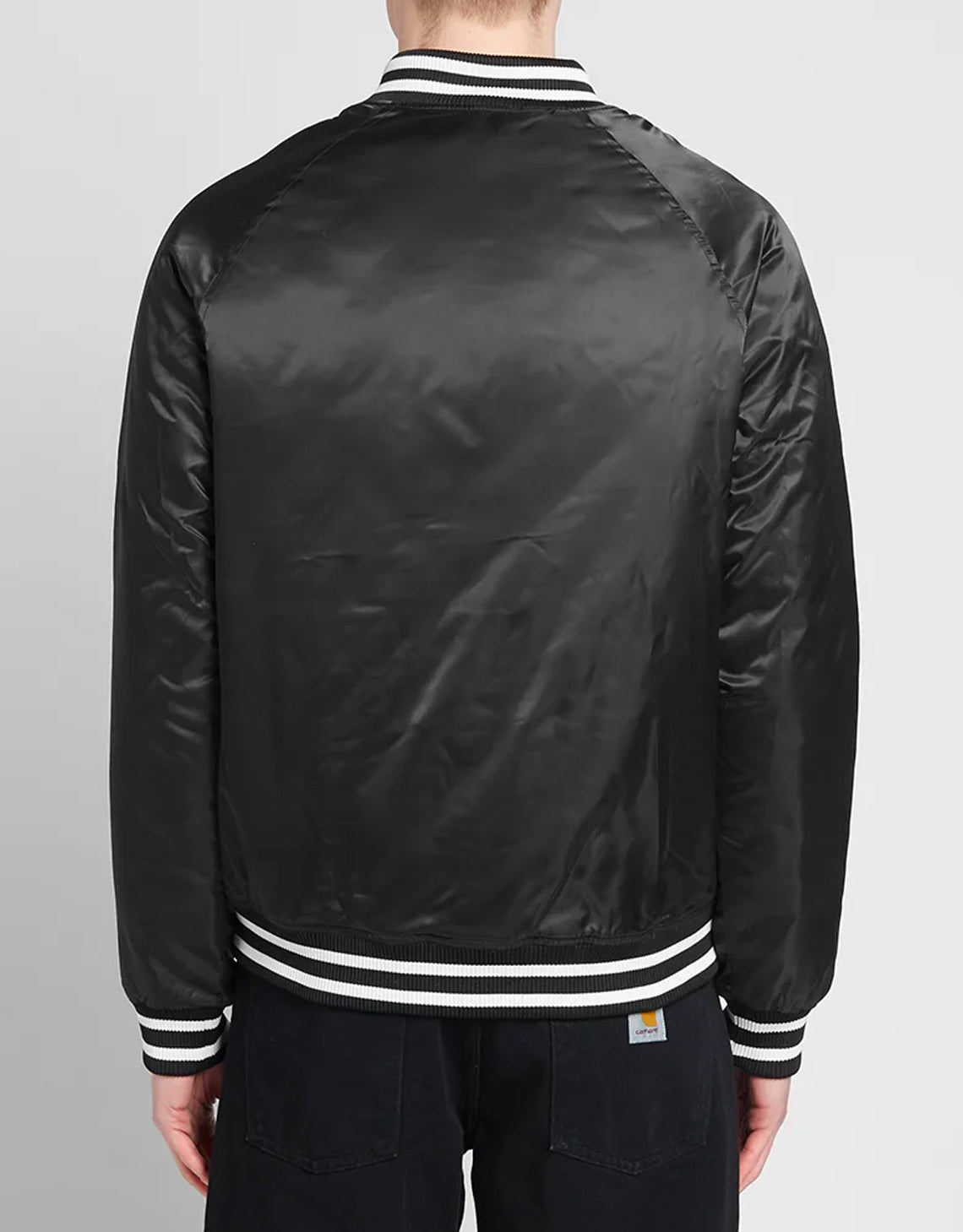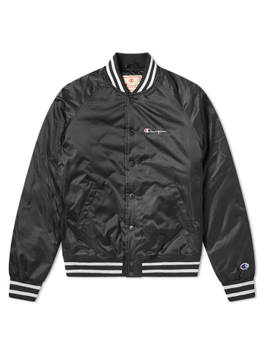 Reverse Weave Script Logo Satin Bomber Jacket Black