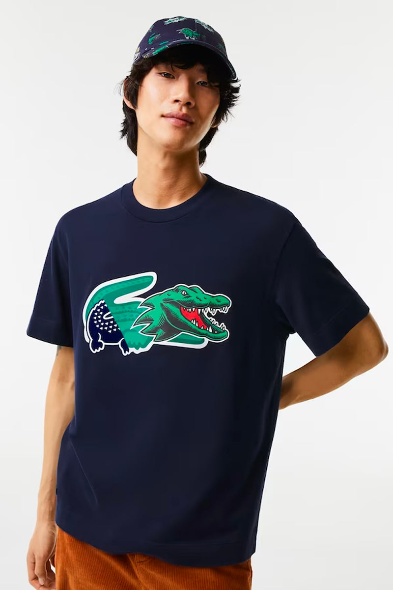 Men's Relaxed Fit Oversized Crocodile T-Shirt MARINE