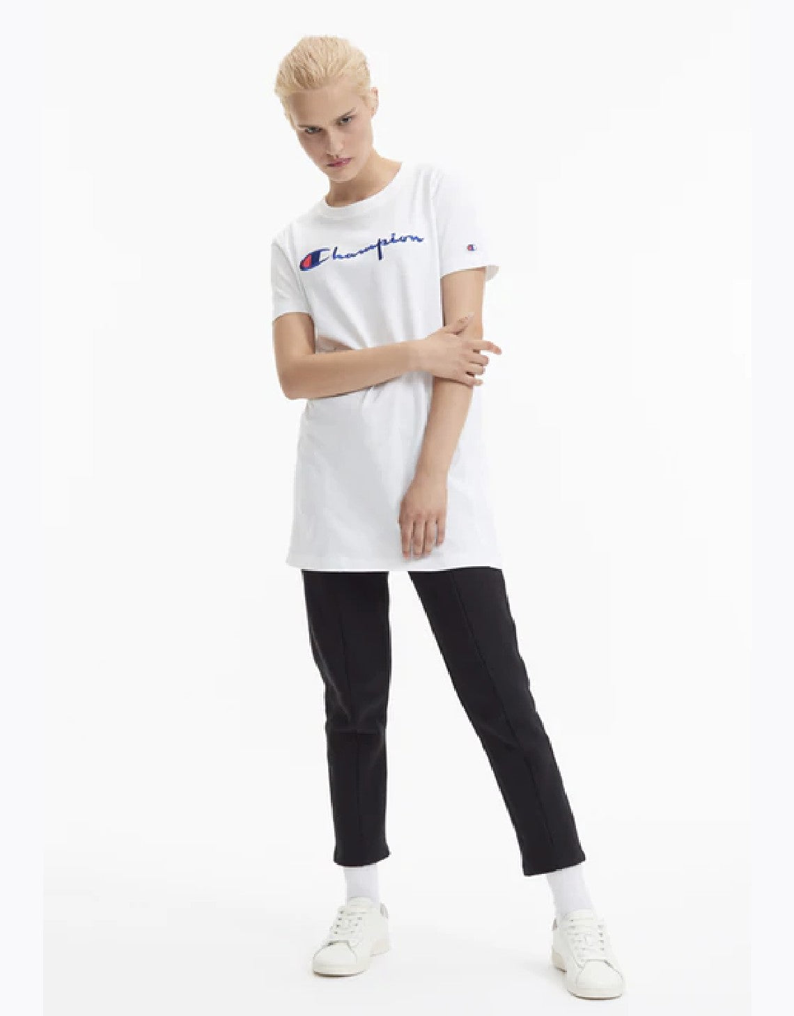 Re-worked in a longline silhouette, this staple crew neck t-shirt features our logo boldly embroidered across the chest and our signature 'C' onto the sleeve. It's crafted from a soft cotton jersey for superior comfort.