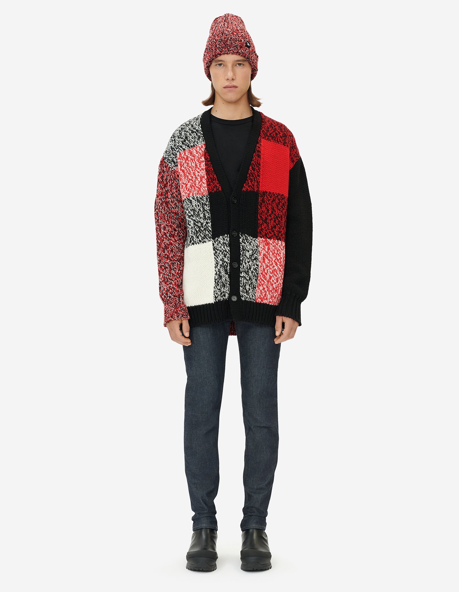 MOULINE CHECK CARDIGAN BLACK RED CHECK
