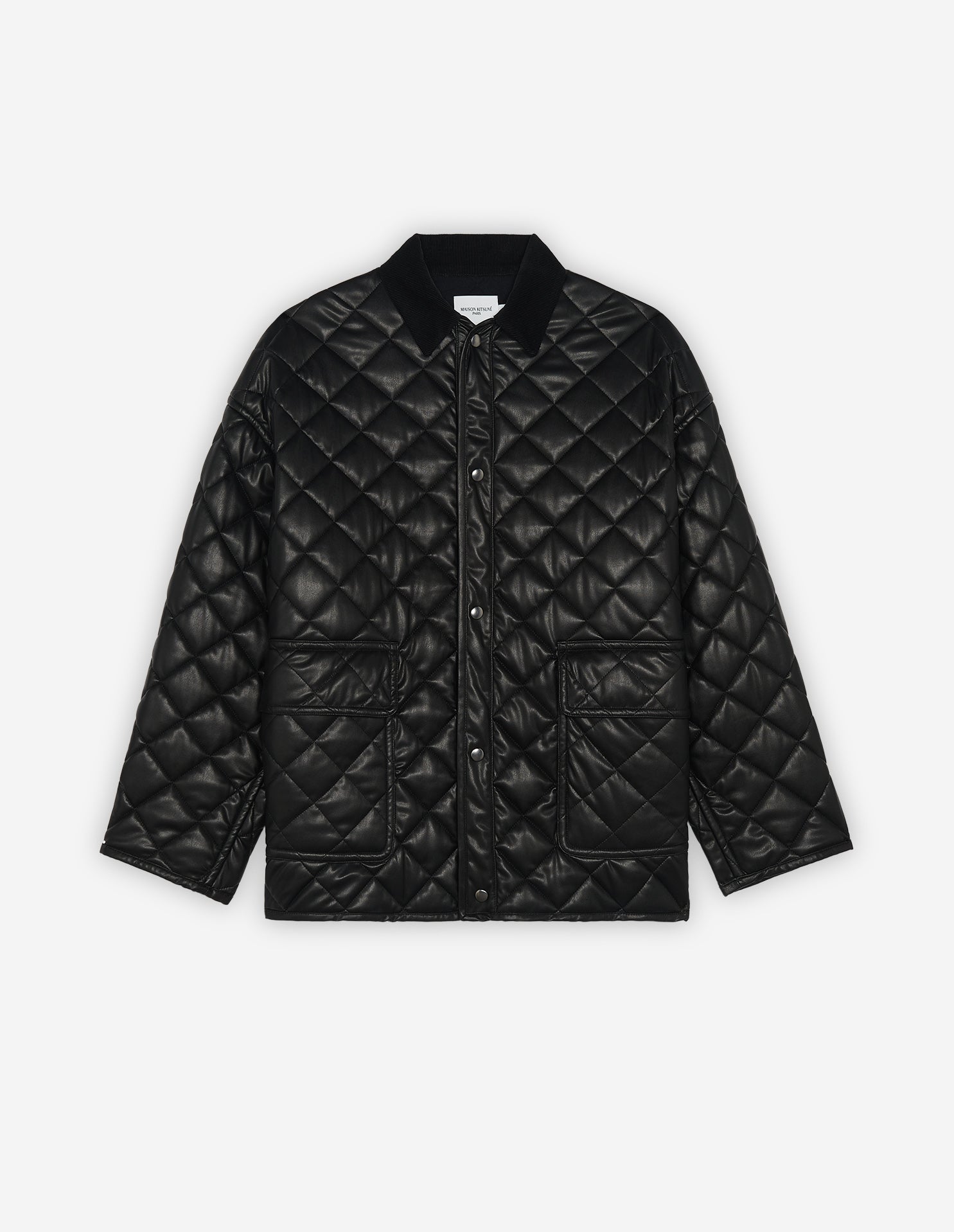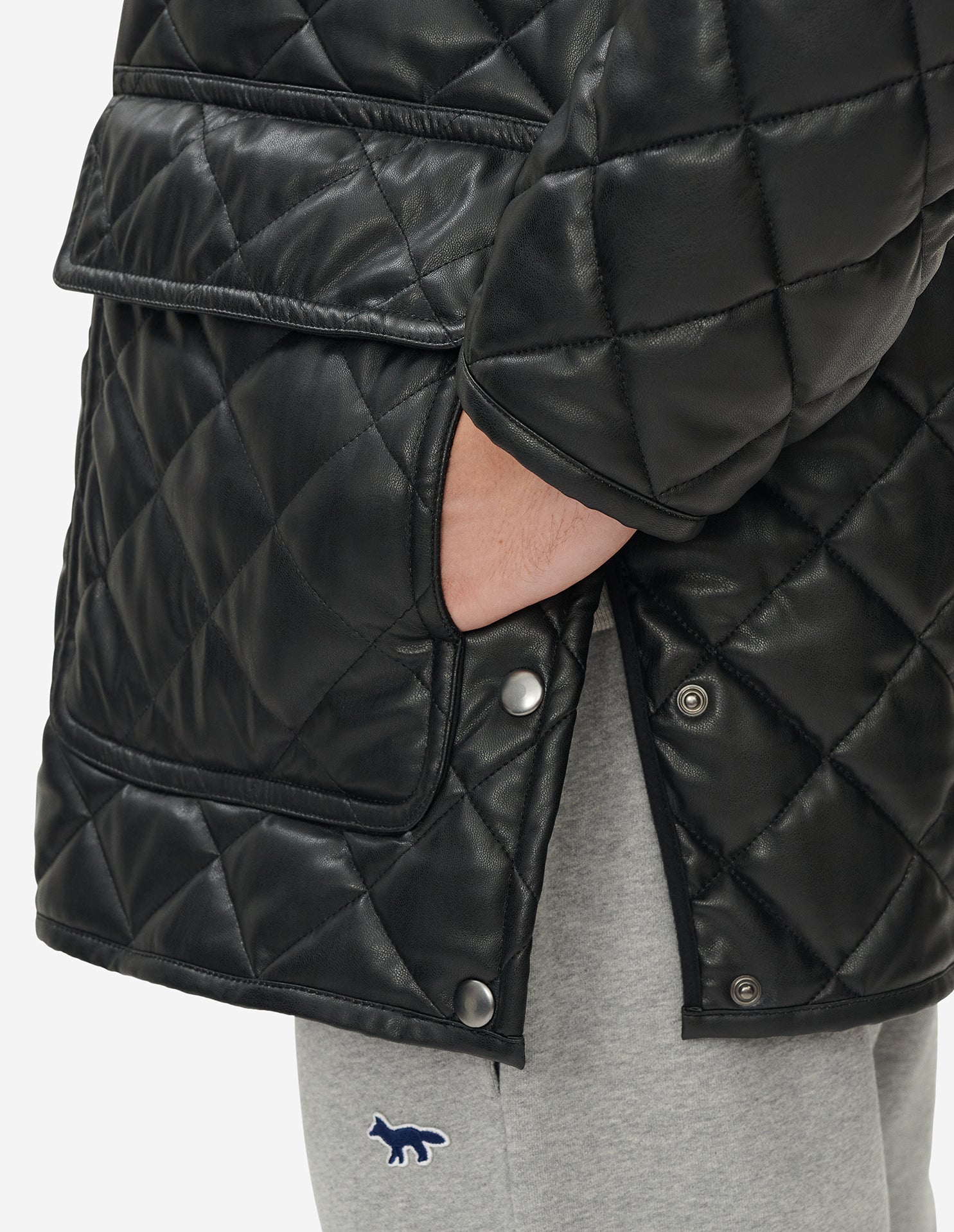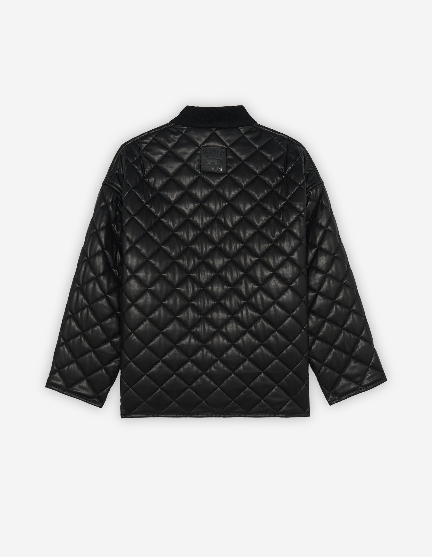 Quilted faux leather jacket. Oversized unisex with leather “Profile Fox Maison Kitsuné” label at the back.
