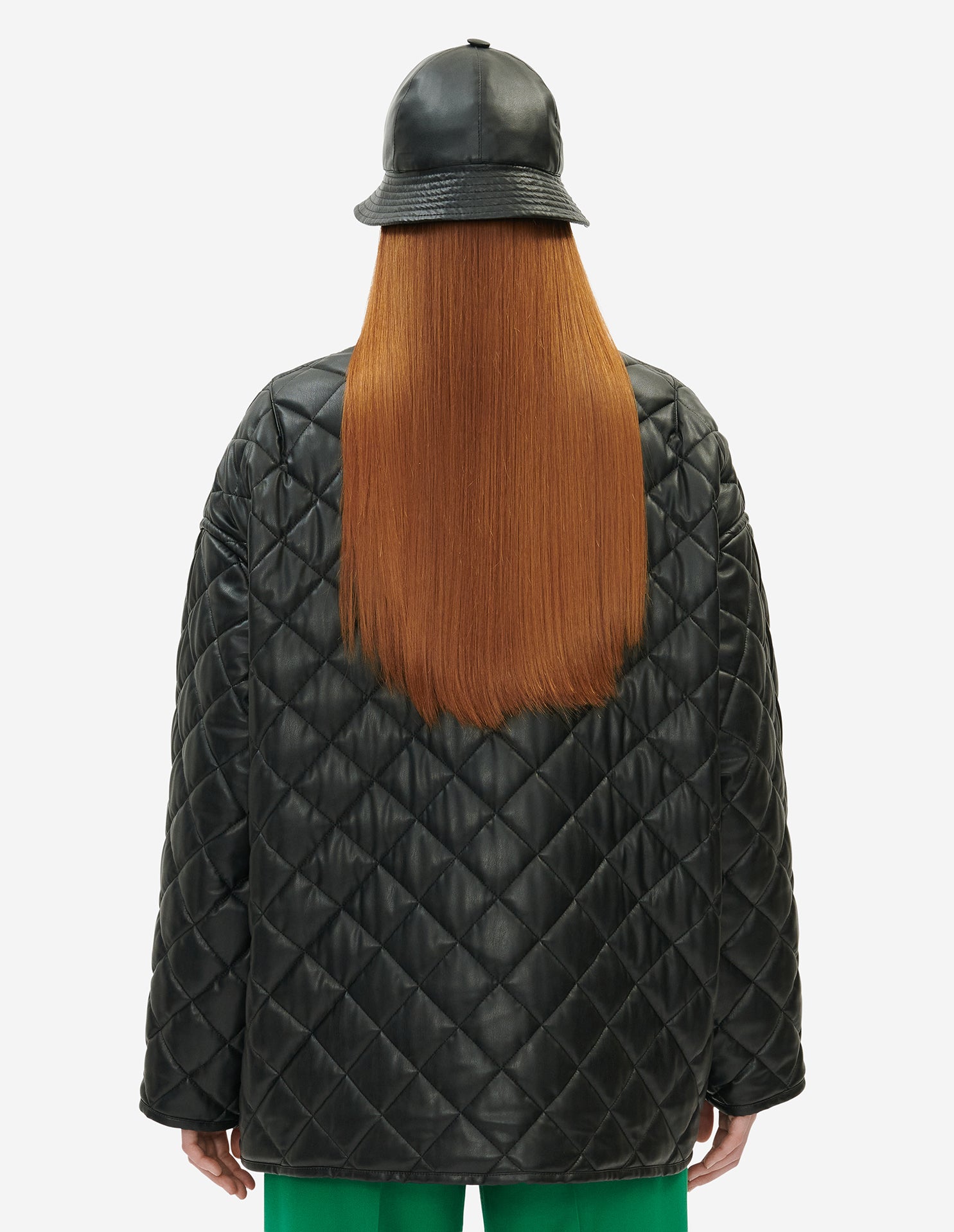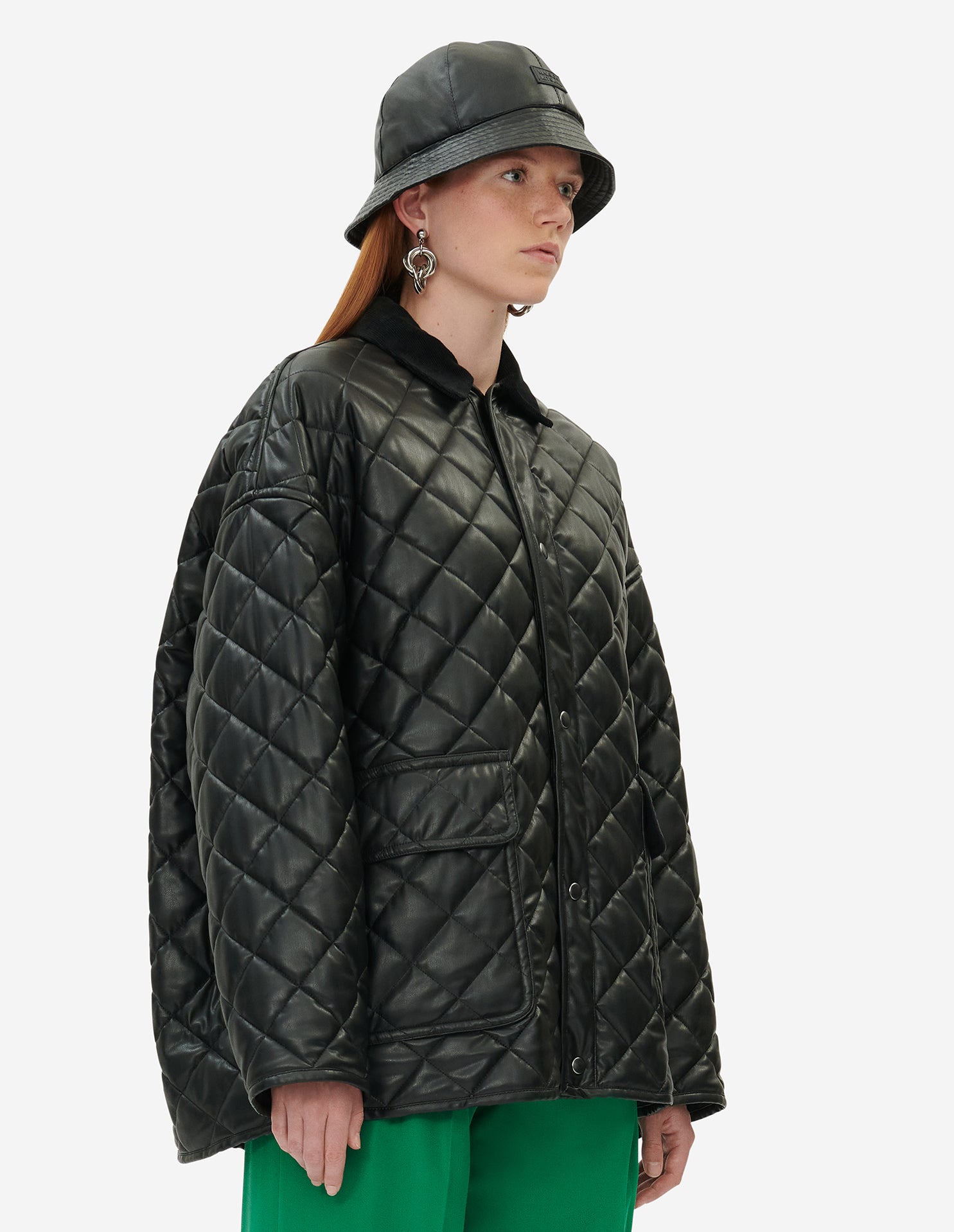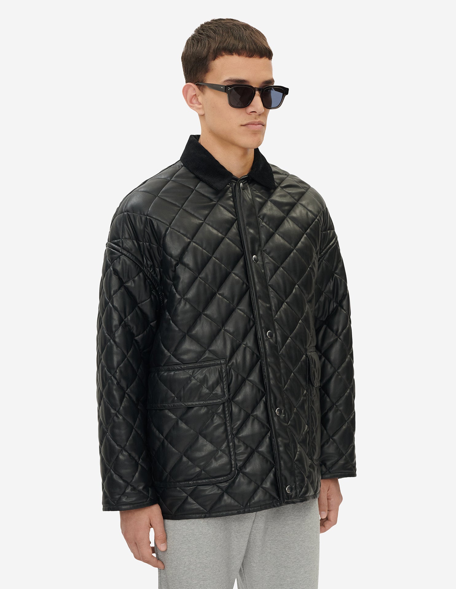 Quilted faux leather jacket. Oversized unisex with leather “Profile Fox Maison Kitsuné” label at the back.