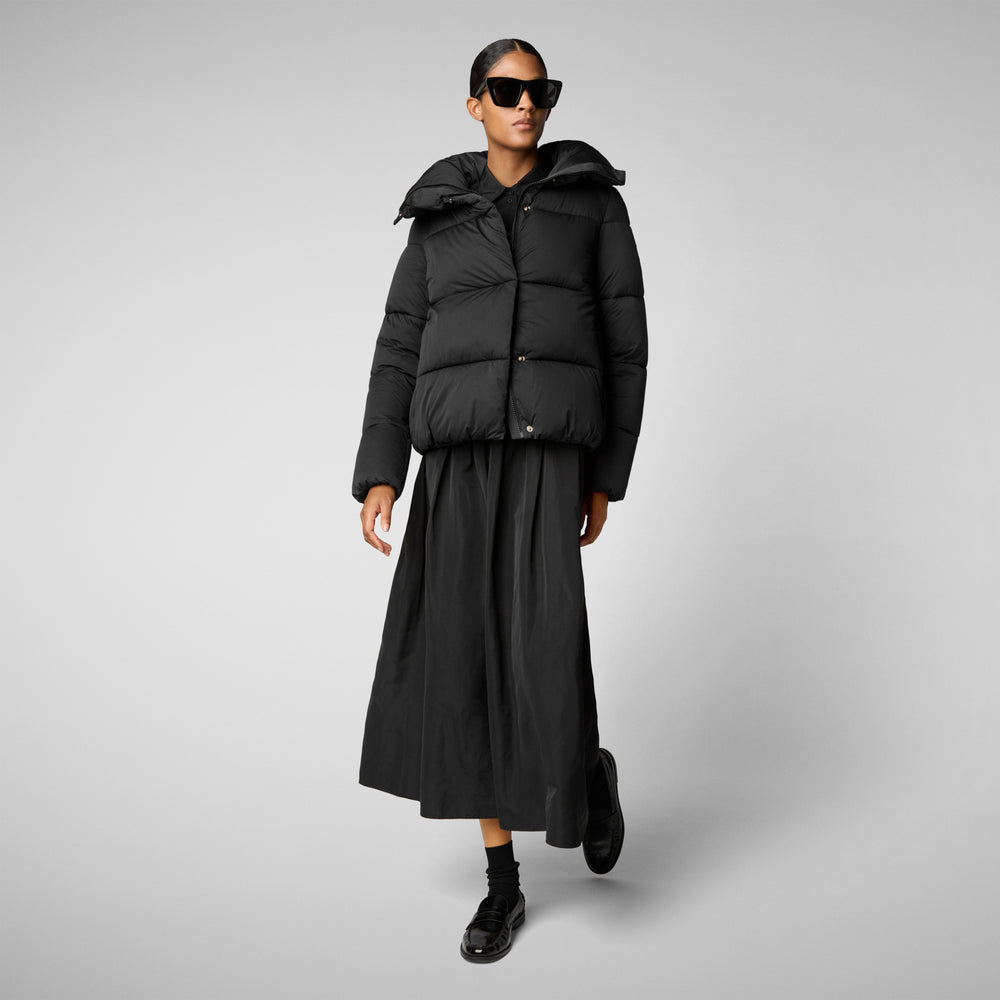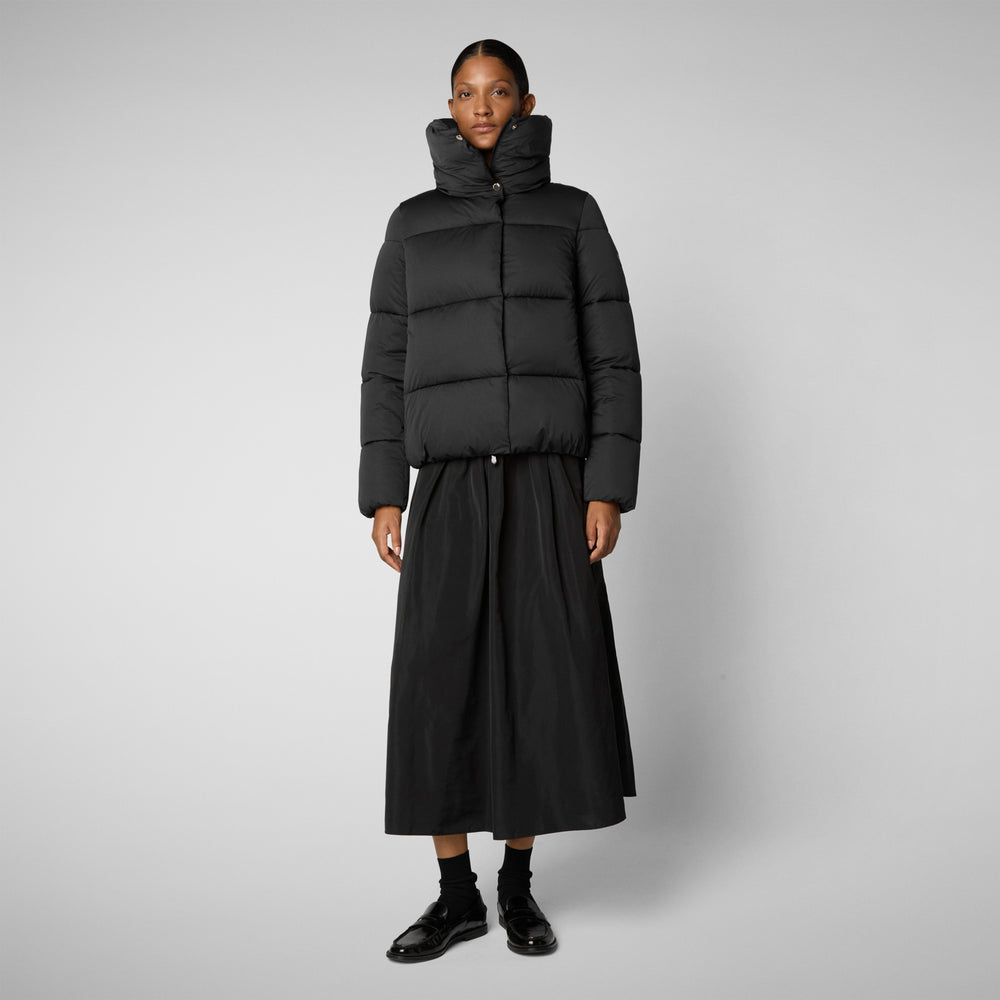 Indulge in the comfortable softness of our Felicity puffer, an elevated cold-weather staple. Accented by light gold details, it features a high, plush neck secured by a gold-tone logo snap, complementing the two-way zip opening with hidden snaps for a seamless look. Concealed zippered lower pockets add to its sleek silhouette, making this contemporary design a go-to option for your winter wardrobe.