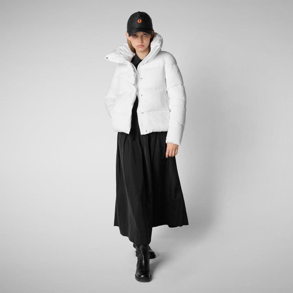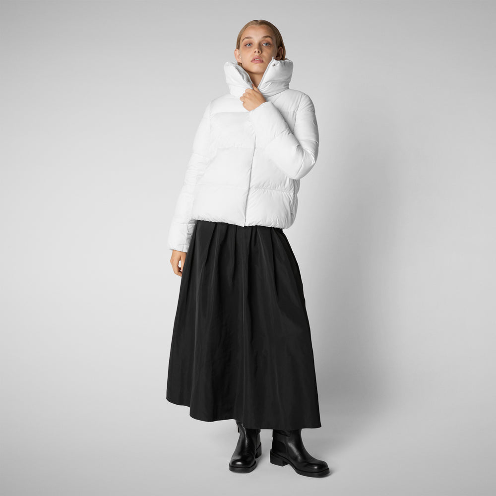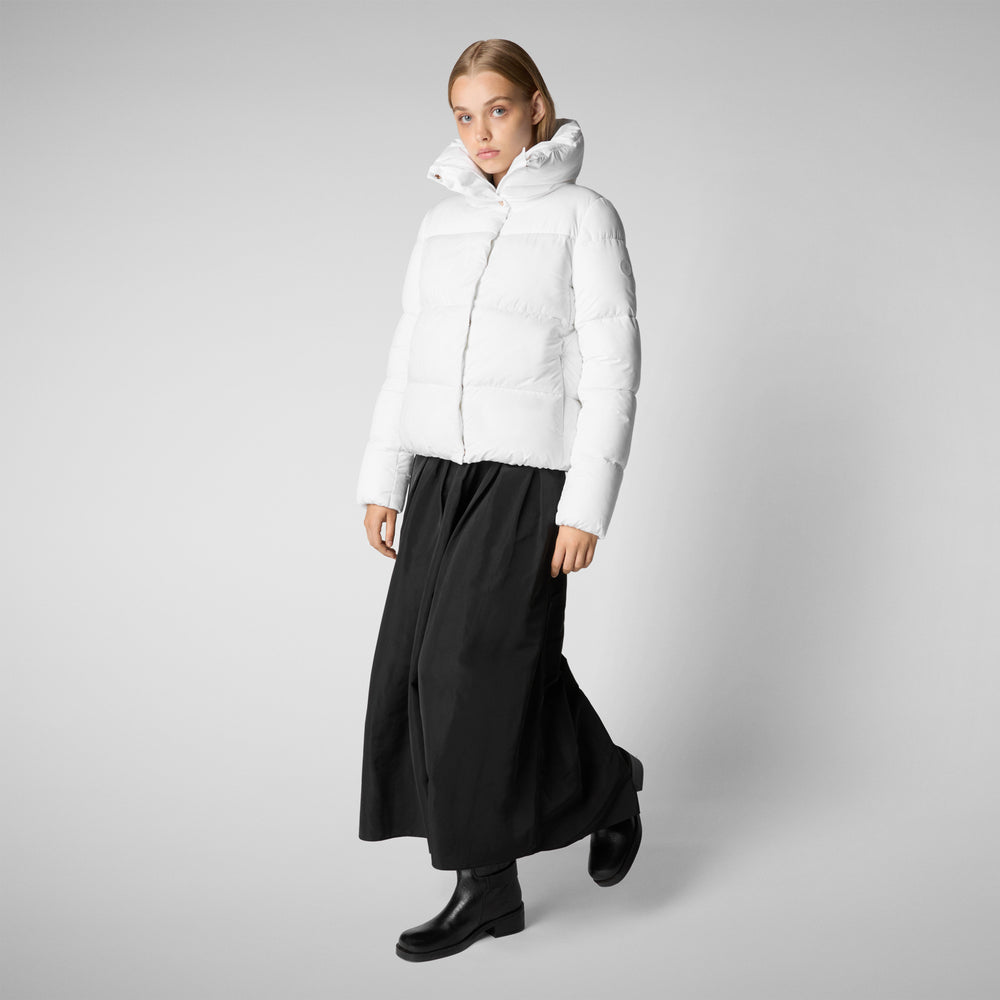 Indulge in the comfortable softness of our Felicity puffer, an elevated cold-weather staple. Accented by light gold details, it features a high, plush neck secured by a gold-tone logo snap, complementing the two-way zip opening with hidden snaps for a seamless look. Concealed zippered lower pockets add to its sleek silhouette, making this contemporary design a go-to option for your winter wardrobe.