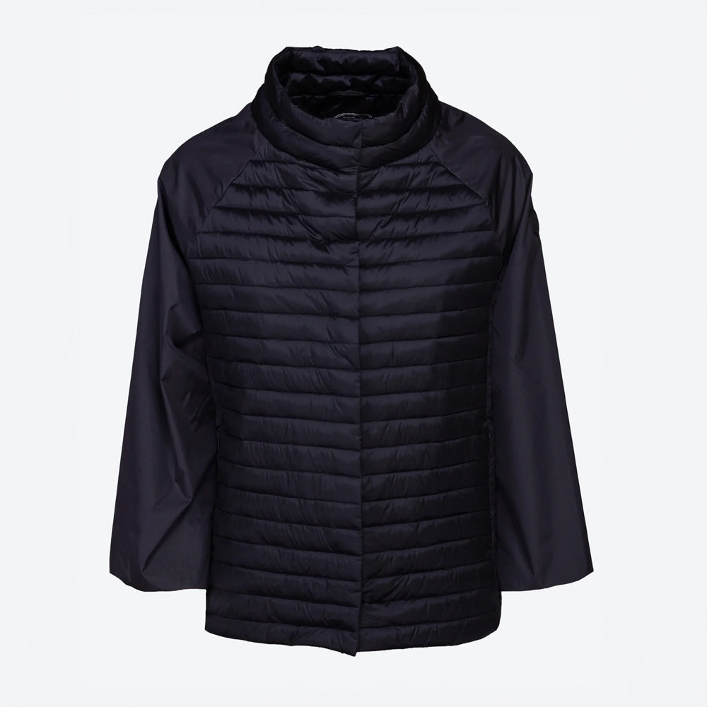 The down jacket on the front, lightly padded with Plumtech thermal wadding, ensures warmth without adding unwanted volume, while the sleeves and back in lightweight satin nylon are waterproof and breathable.