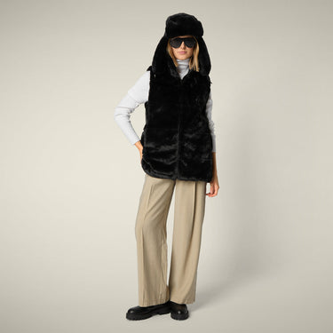 Women's Reversible Faux Fur Vest mod. Nives in Black