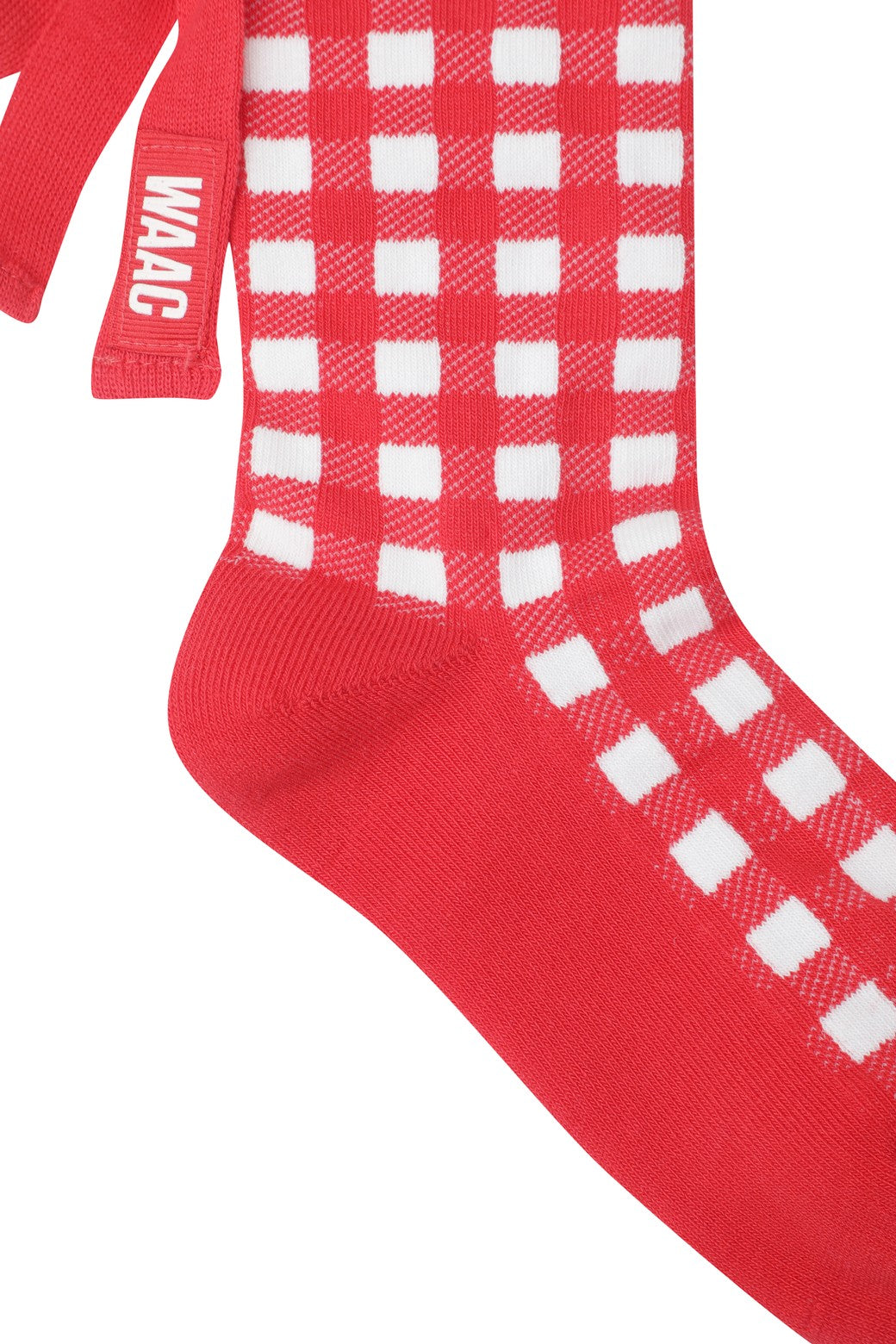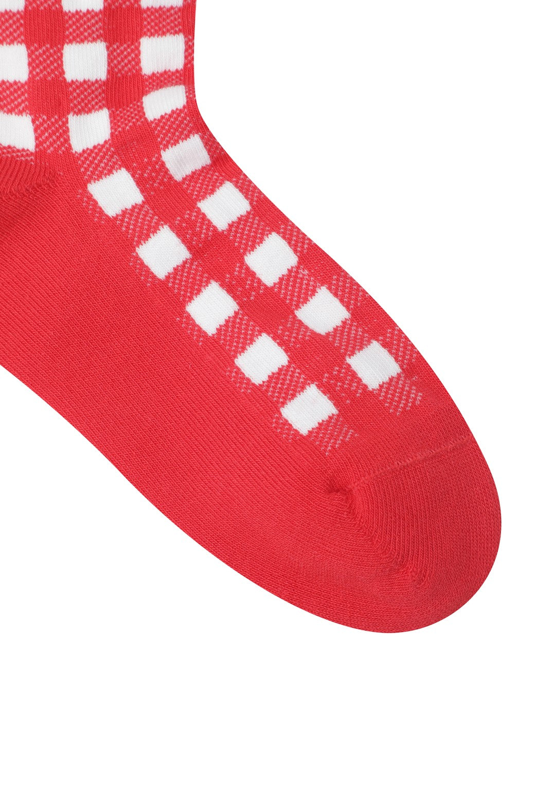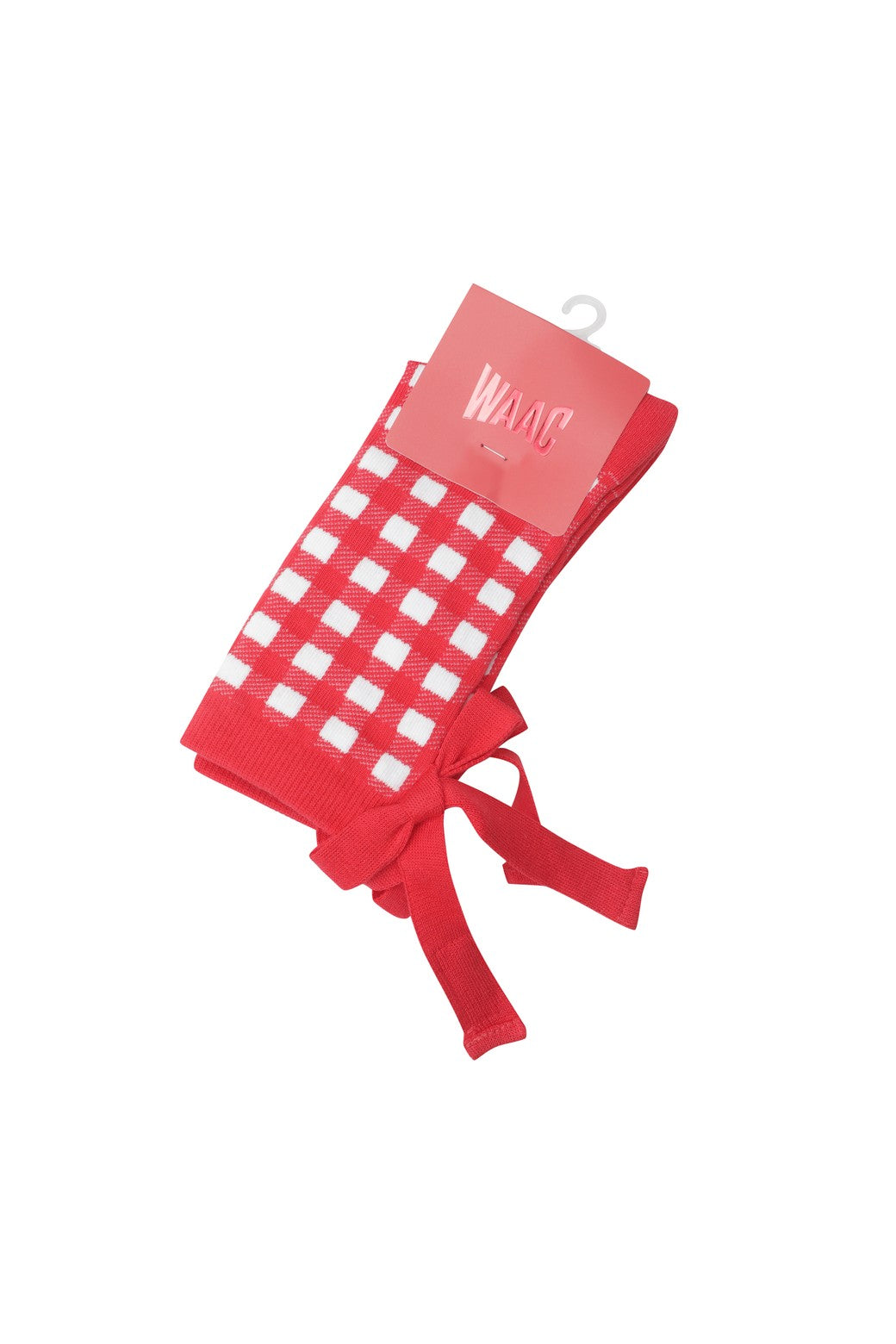 These women's mid-calf socks feature a seasonal check pattern and a ribbon detail, making them perfect for coordinating with various outfits.