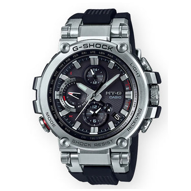These new MTG-B1000 models incorporate a new shock-resistant structure, a smaller case size, and improved fit to the wrist to create a selection of new additions to the MT-G lineup of TRIPLE G RESIST metal-and-resin combination models. The new shock resistant structure of these models is the result of the G-SHOCK MT-G constant pursuit of improved strength and durability. A New Core Guard structure integrates the lugs and pipes that connect the band into single pieces, creating a wall that isolates the watch's module from impact. The resin of the center case is also reinforced with carbon fibers, which further enhances module protection, while reducing overall weight. These watches come with a new Connected Engine module for improved timekeeping accuracy. A Bluetooth® communication function makes it possible to connect with a smartphone running the G-SHOCK Connected* app and obtain accurate time information from an on-line time server. MULTIBAND 6 automatically adjusts time settings based on reception of one of six time calibration signals around the globe, for automatic time adjustment when you are within the range of a signal, even if connection with a smartphone is not possible for some reason. All of this means that timekeeping is accurate, no matter where in the world you happen to be. Other features include high-brightness LED illumination, World Time, stopwatch, and more. Stable operation is ensured by a CASIO original Tough Solar charging system.