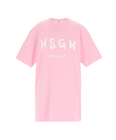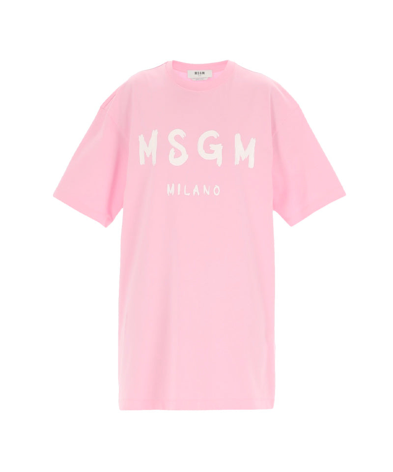 The round neck solid colour cotton dress is a model with short sleeves. The dress features an MSMG Milano brushed logo printed on the front. The fit is regular.