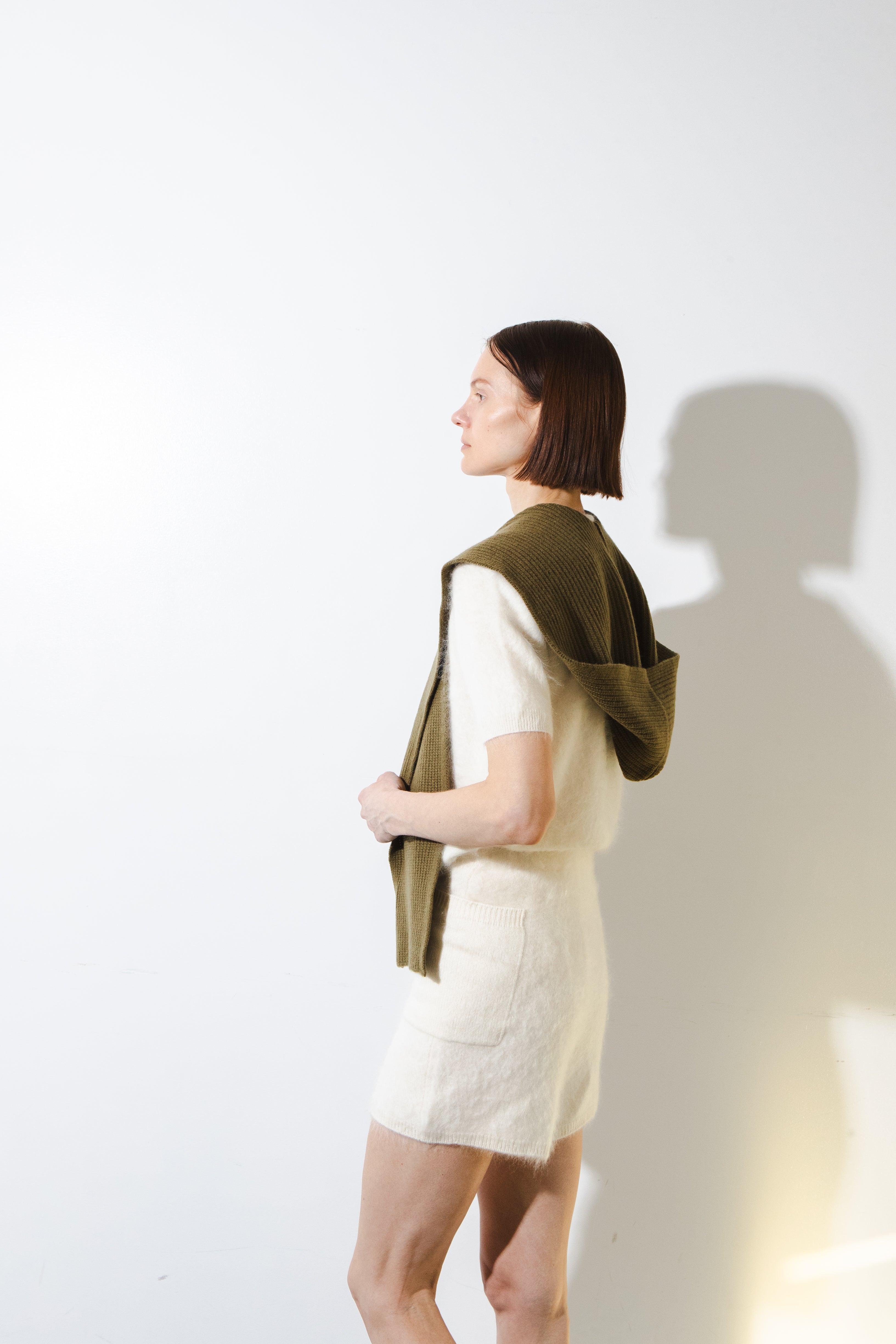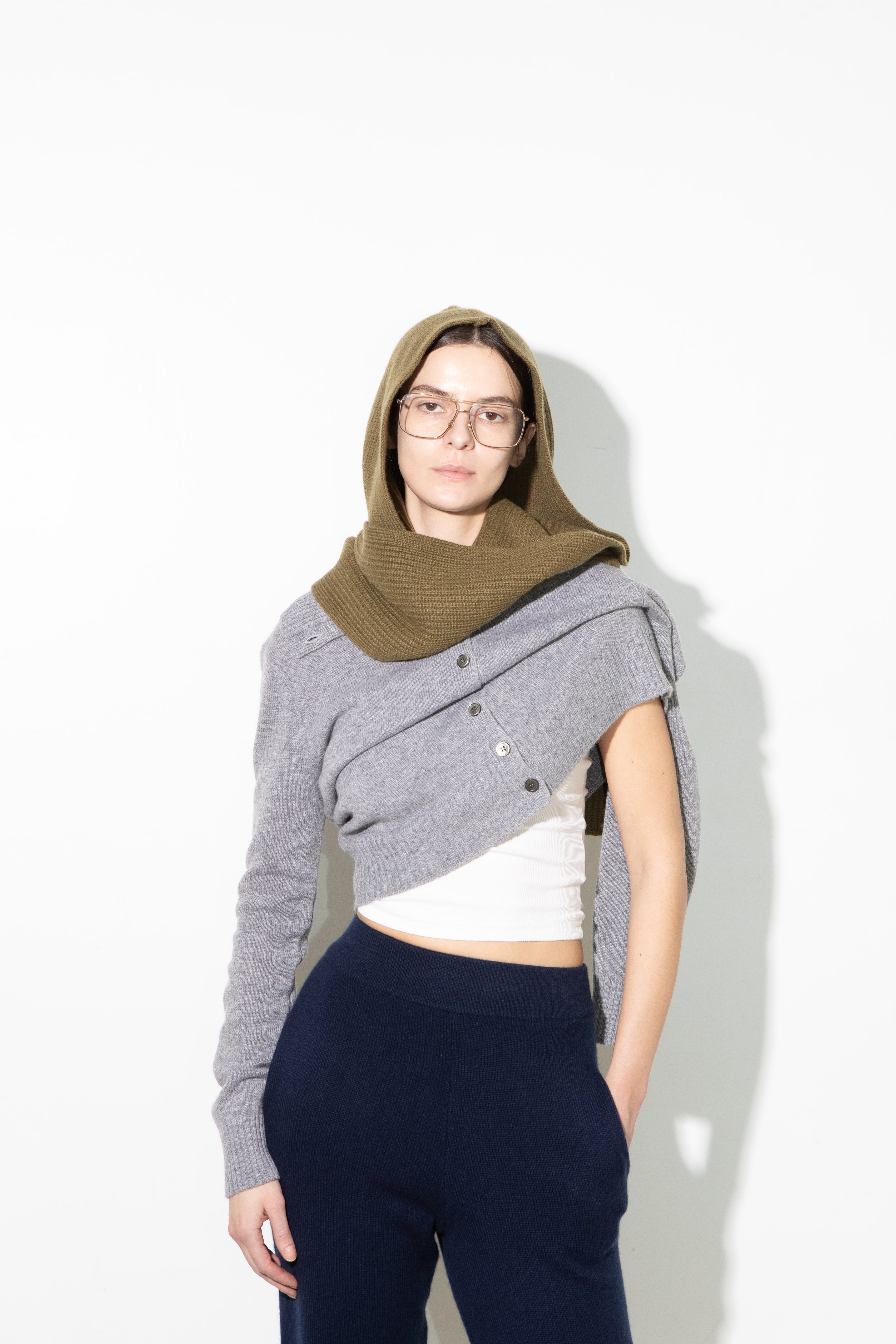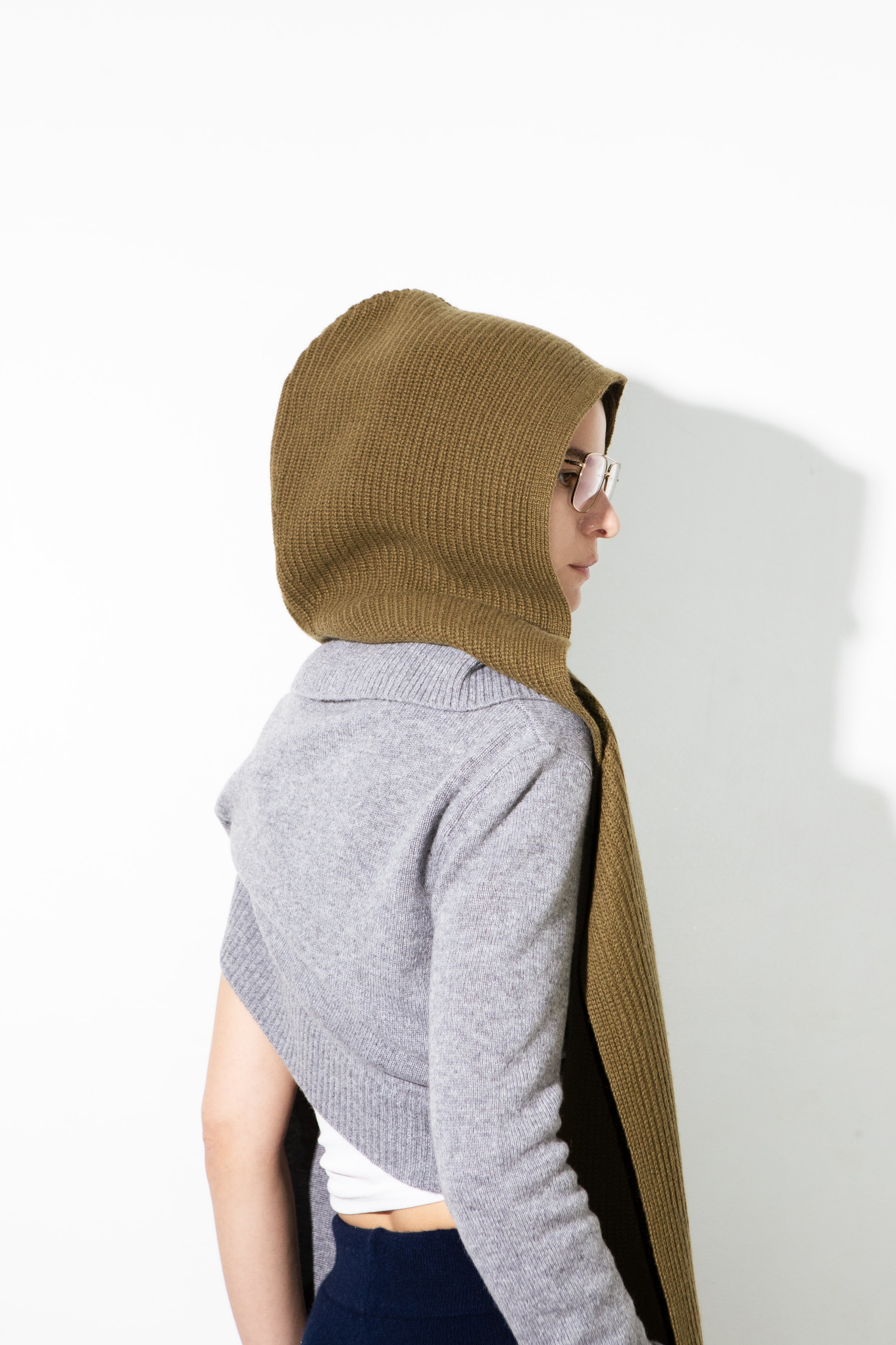 Wrap yourself in effortless luxury with this ribbed cashmere hooded scarf. Crafted from ultra-soft pure cashmere, it features a subtle ribbed texture that adds both warmth and dimension. Combining the coziness of a hood with the versatility of a scarf, it offers an elegant yet modern finishing touch to any winter ensemble.