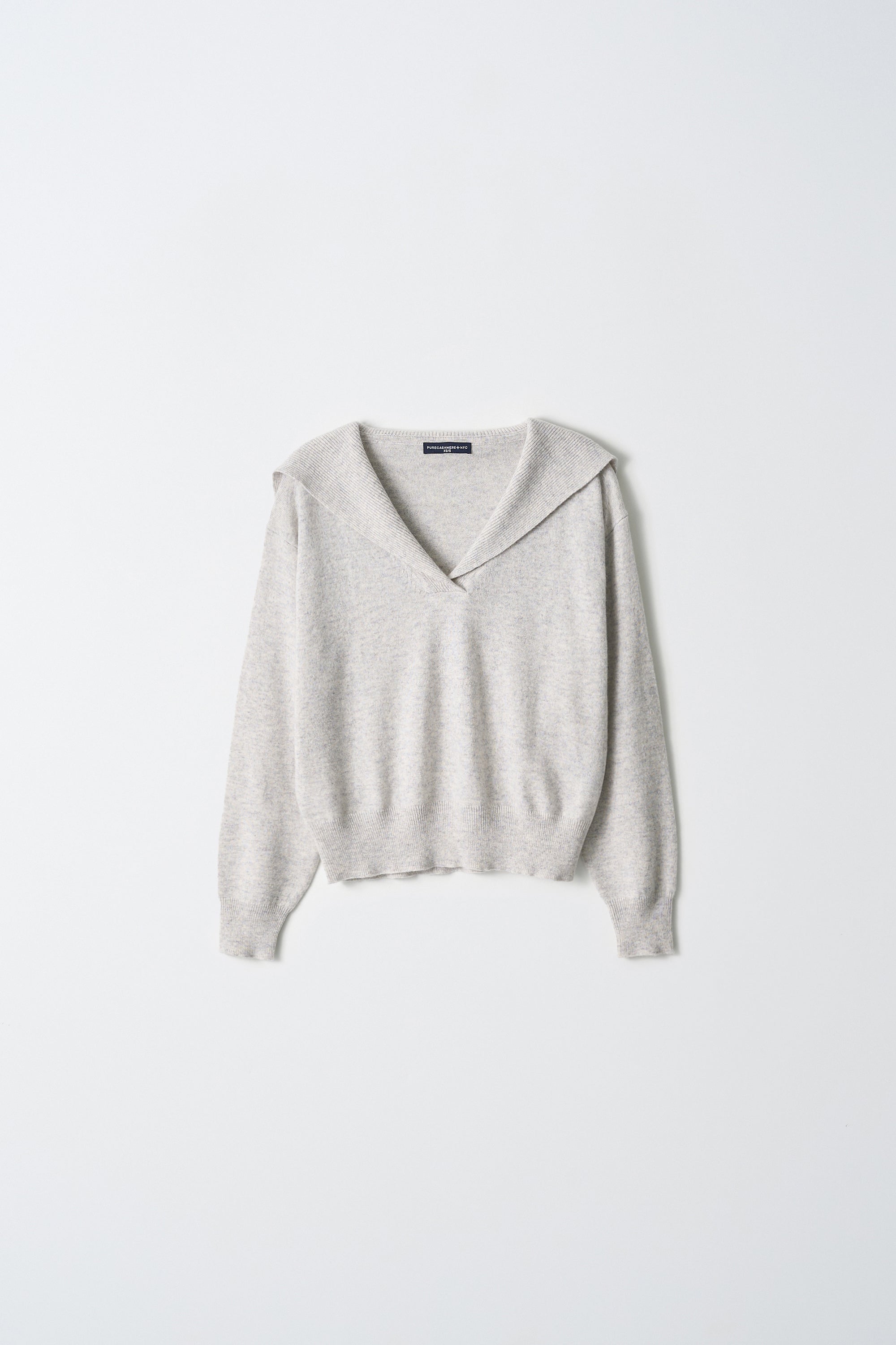 A refined take on a classic silhouette. Crafted from pure cashmere, this sailor-collar top combines timeless charm with a modern sensibility. The soft, lightweight knit drapes beautifully over the body, while the distinctive collar detail adds a subtle statement of sophistication. Perfect for effortless layering across seasons.