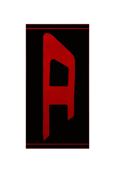 A red and black design, this men's large beach towel is made from organic cotton and emblazoned with a blown-up version of the iconic D logo.