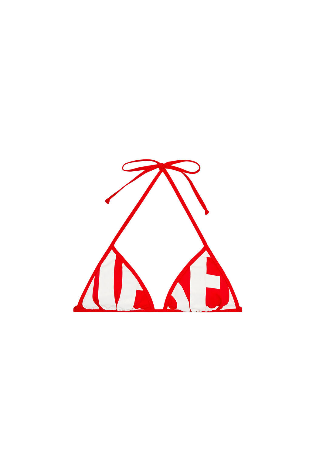Women's bikini top in quick-dry fabric spun from recycled fibres and stretch. This style is emblazoned with contrast maxi Diesel lettering, cut off to form the triangle cuffs.