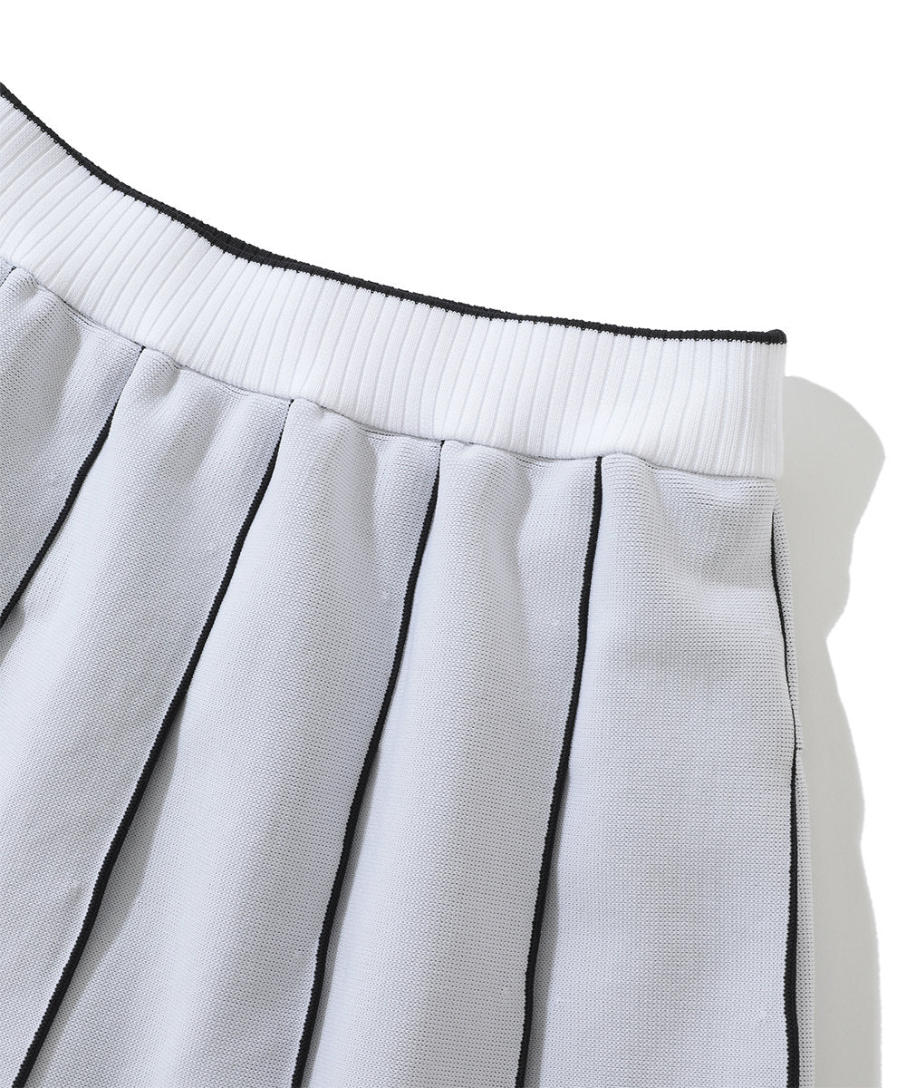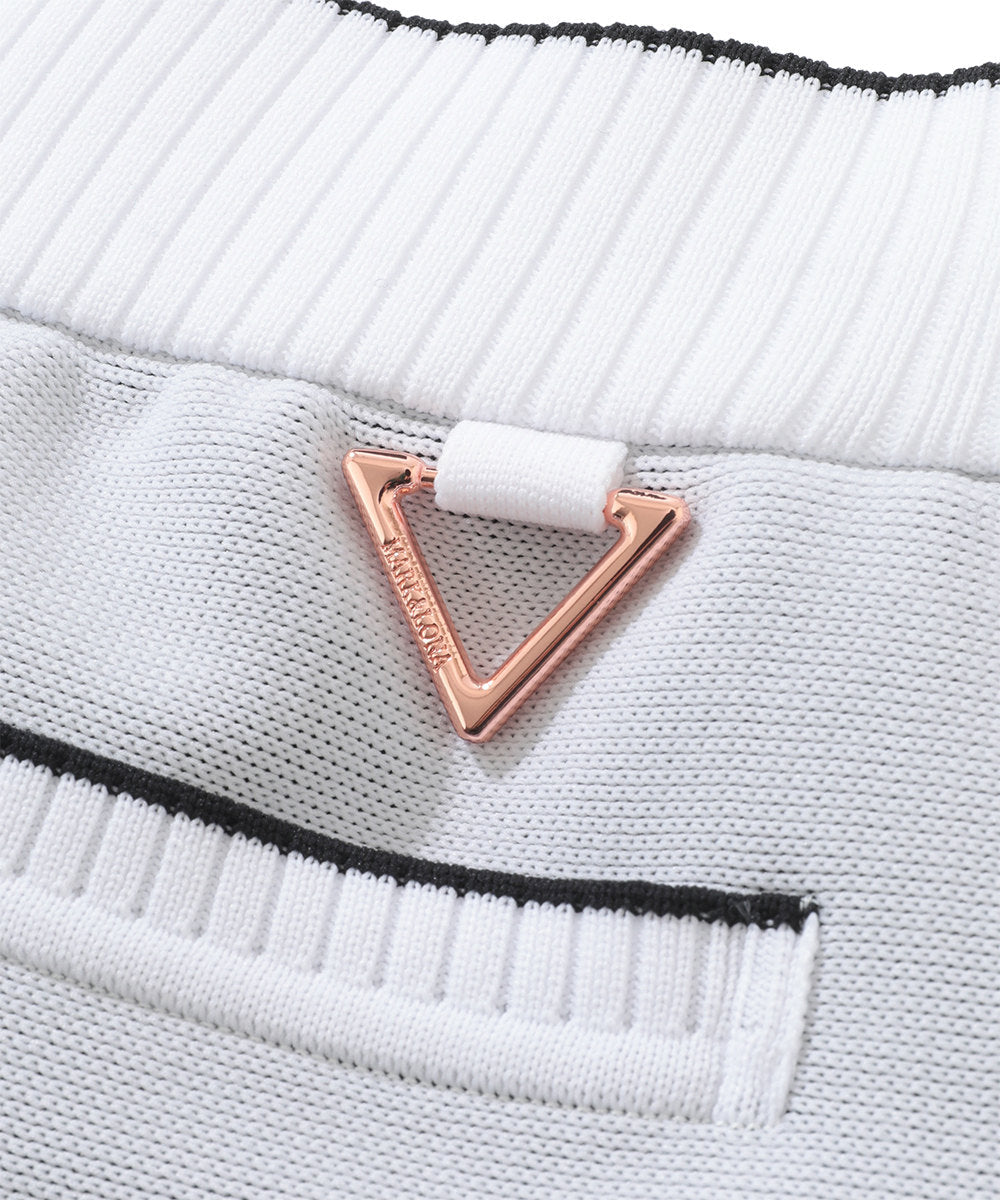 Lightweight and stretchy polyester functional yarn with enhanced volume and softness is used. Slash pockets with zippers utilizing hagis on both sides and patch pockets on the back allow for storage and carrying of pins and other small items. Supports comfortable rounds. You can also attach a ball pouch, etc. to the triangular can below the right belt.