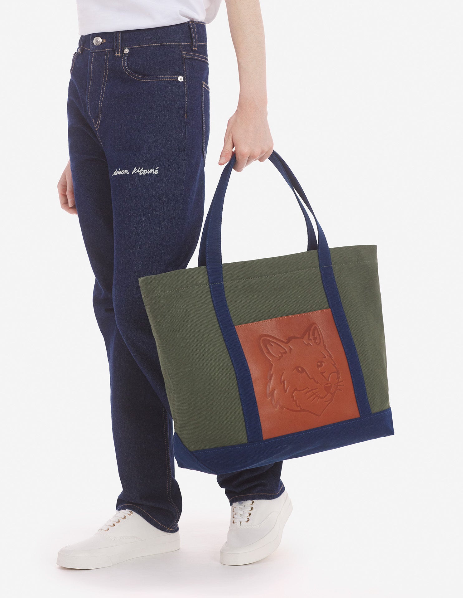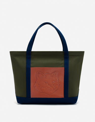 Fox Head Leather Pocket Classic Tote Bag Military Green/ink Blue