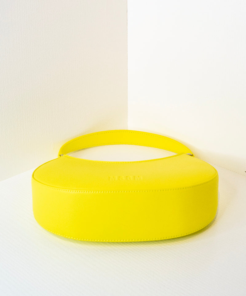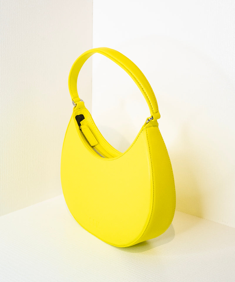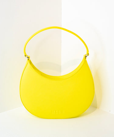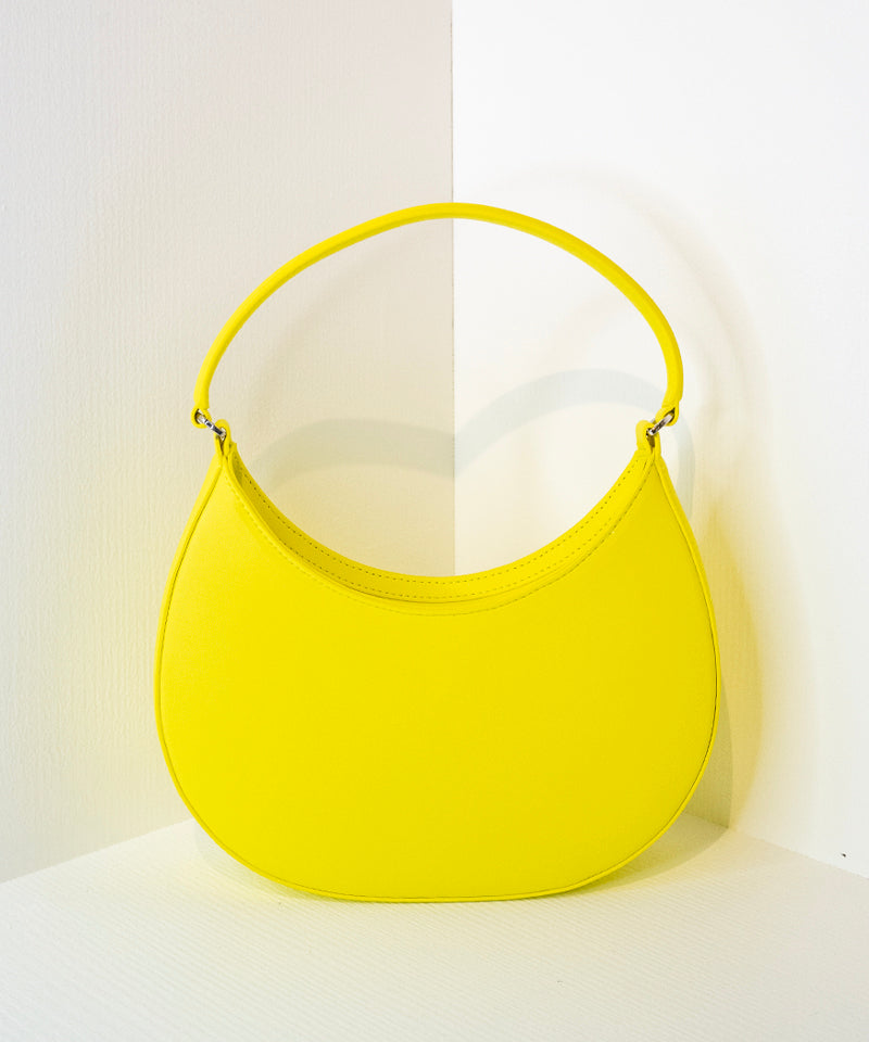 Opaque Faux Leather Small "Hobo" Shoulder Bag Fluo Yellow