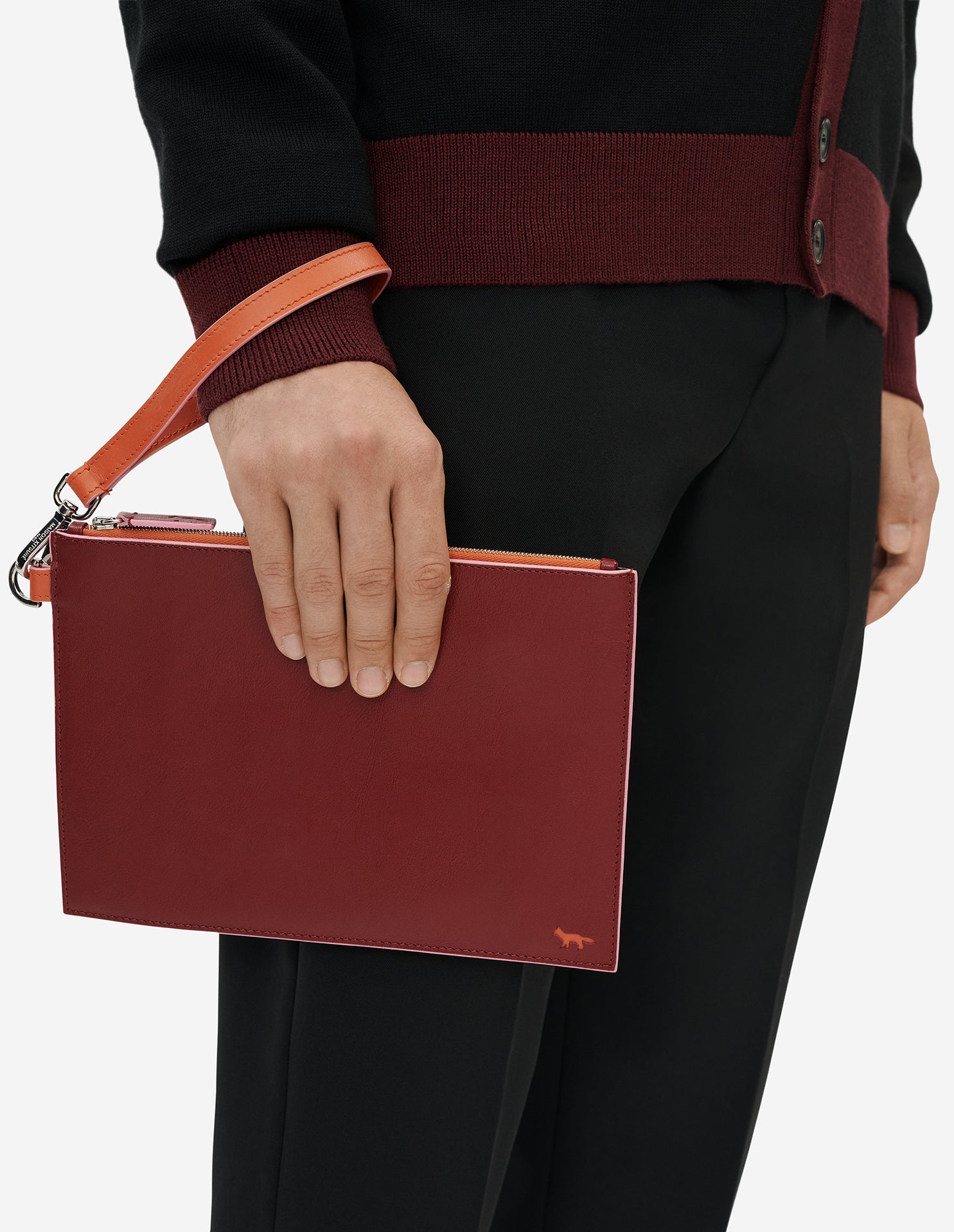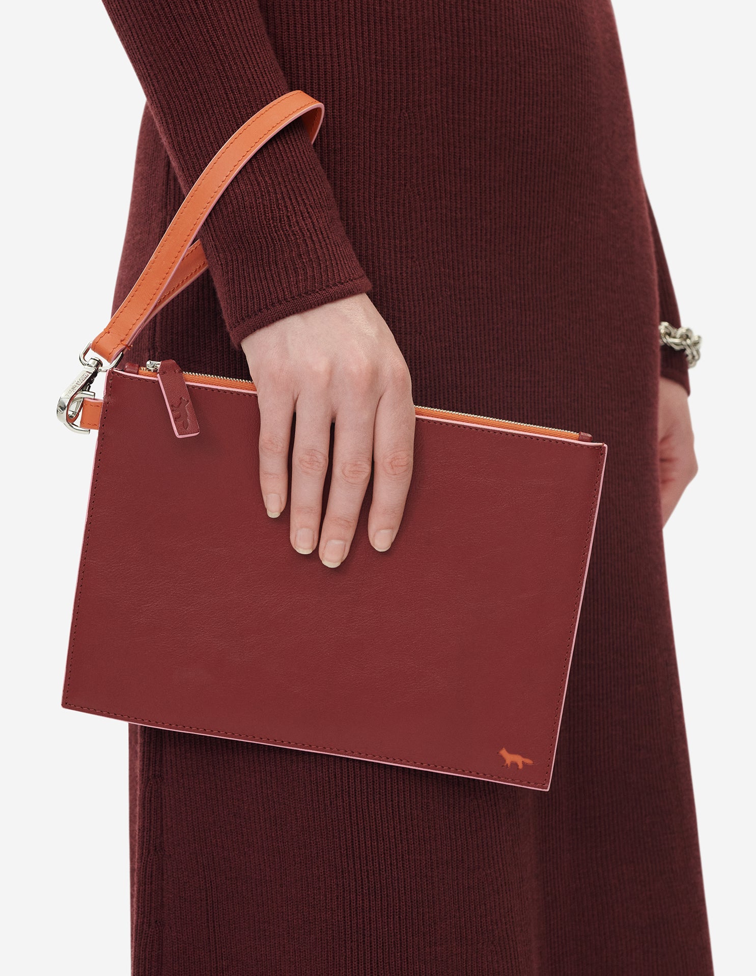 MAISON KITSUNÉ PROFILE FOX POUCH WITH STRAP WINE LEES