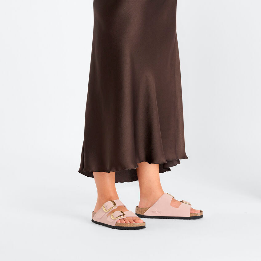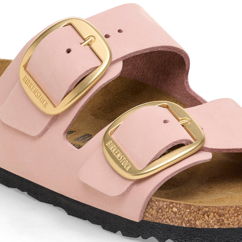 The legendary two-strap design from BIRKENSTOCK with amplified buckle accent - the Arizona Big Buckle. The Big Buckle version features a large, elegant buckle creating a bold yet minimalist design. The semi-exquisite footbed is fully lined with soft piumato leather, making it exceptionally comfortable. The upper is made from high-quality natural leather with a high shine finish.