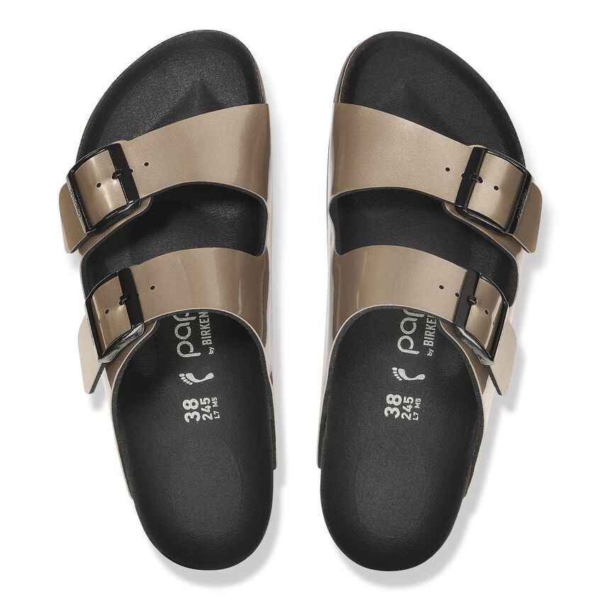 - Synthetic Birko-Flor® upper with metallic patent coating