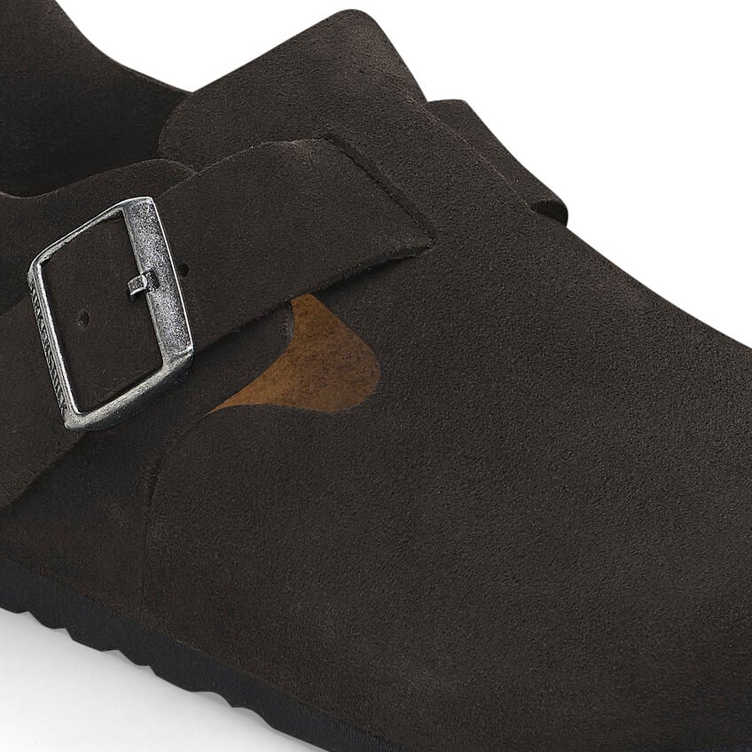 One of the first closed-toe styles from BIRKENSTOCK, The London is the epitome of simplicity with clean lines and an adjustable buckle strap. The iconic footbed provides signature comfort and support. With an easy fit and feel, it boasts a natural, rustic look with a soft suede upper
