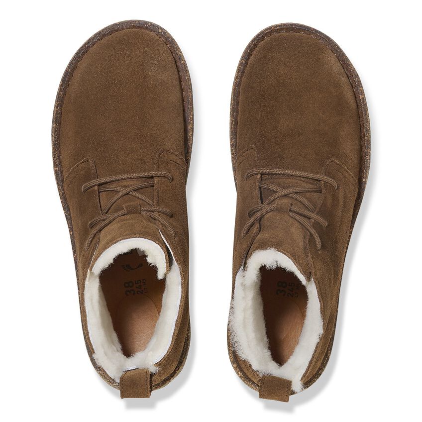 Original footbed, Chukka-inspired design. The Uppsala Mid boot laces you a cozy, genuine shearling lining. Velvety suede on the outside, original contoured footbed on the inside. Feel the difference after a day on your feet.