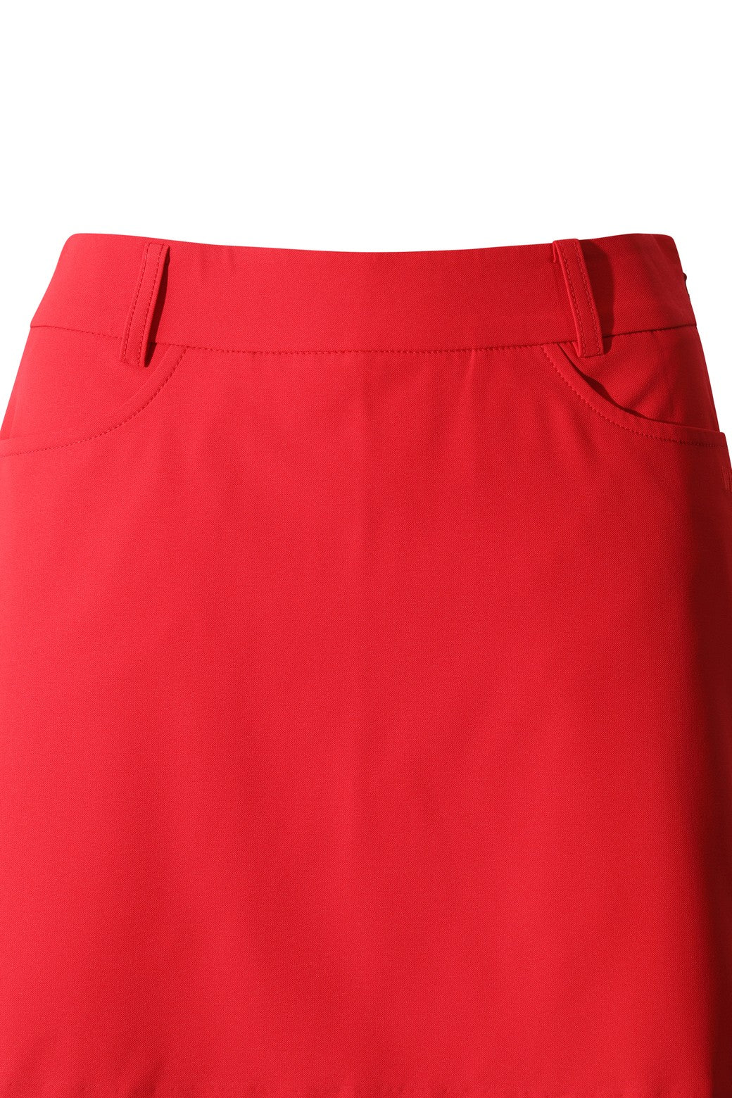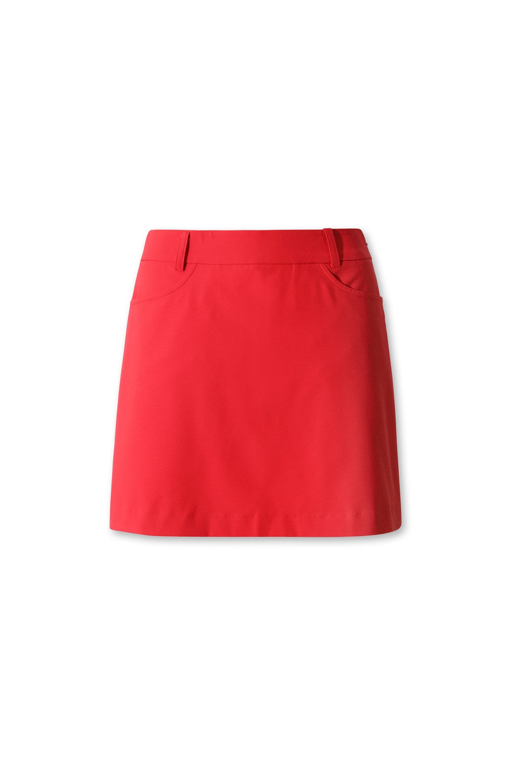 This skort features a simple design with pleated detailing on the back, offering a feminine and athletic look. It is made with a four-way stretch fabric for comfortable movement, and includes built-in shorts for added coverage and peace of mind.