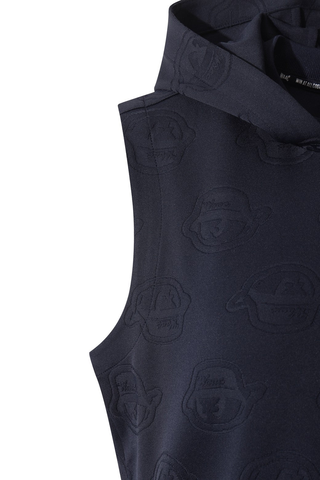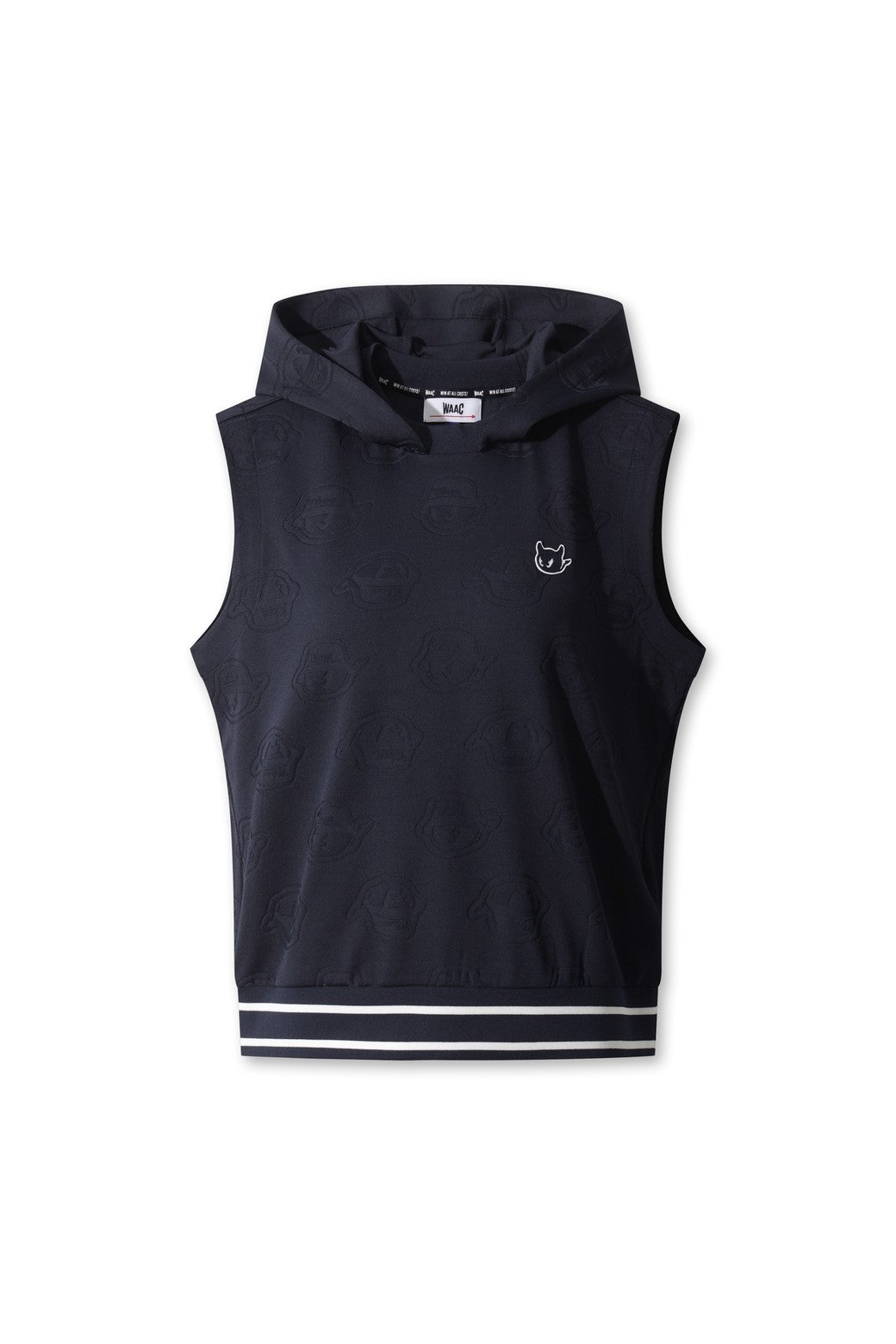 This semi-loose fit sleeveless hoodie features a unique WAACKY jacquard pattern, bringing a stylish and playful vibe to your athletic wear. The hoodie is designed for comfort and ease of movement with a flexible spandex blend and a waistband that cinches the waist for a flattering fit.