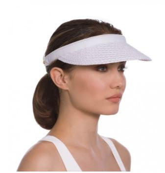A sporty visor with a structured peak covered in Squishee® is attached to a flexible fully upholstered band, which gently hugs the head with just the correct amount of pressure to insure against headaches. Absorbent terry band lining and glare protective fabric for under peak. Blocks 95% UVA/UVB rays. Look your best while you enjoy the sun! Independent testing in accordance with AATCC (American Association of Textile Chemists and Colorists) test methods have determined this product's effectiveness for blocking ultraviolet radiation as well as UVA/UVB radiation. This product was awarded the highest rating of 50+ UPF by independent testing. To learn more about AATCC testing, go to www.aatcc.org.