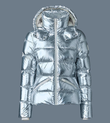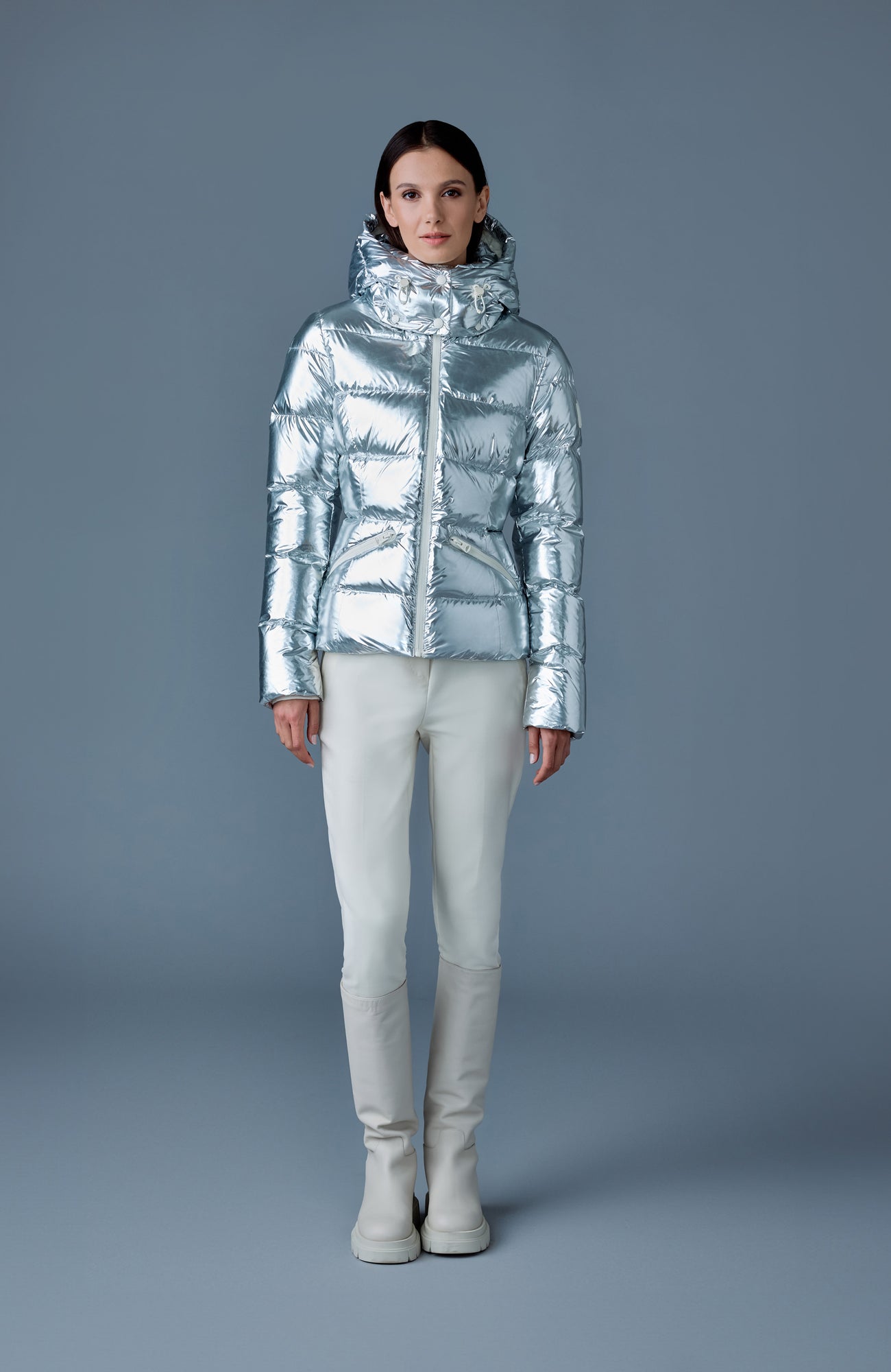 MADALYN-M is a down jacket crafted from a lustrous metallic laminate shell. Tailored to a fitted silhouette, the removable hood is accented with a stand collar for adaptable versatility. Rib knit cuffs and insulated pockets deliver perfect warmth through the seasons. An eye-catching winter layer with ultimate cold protection.