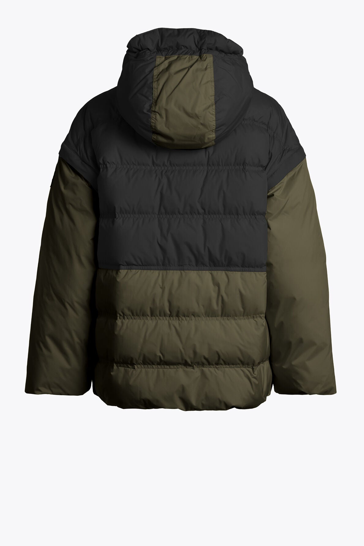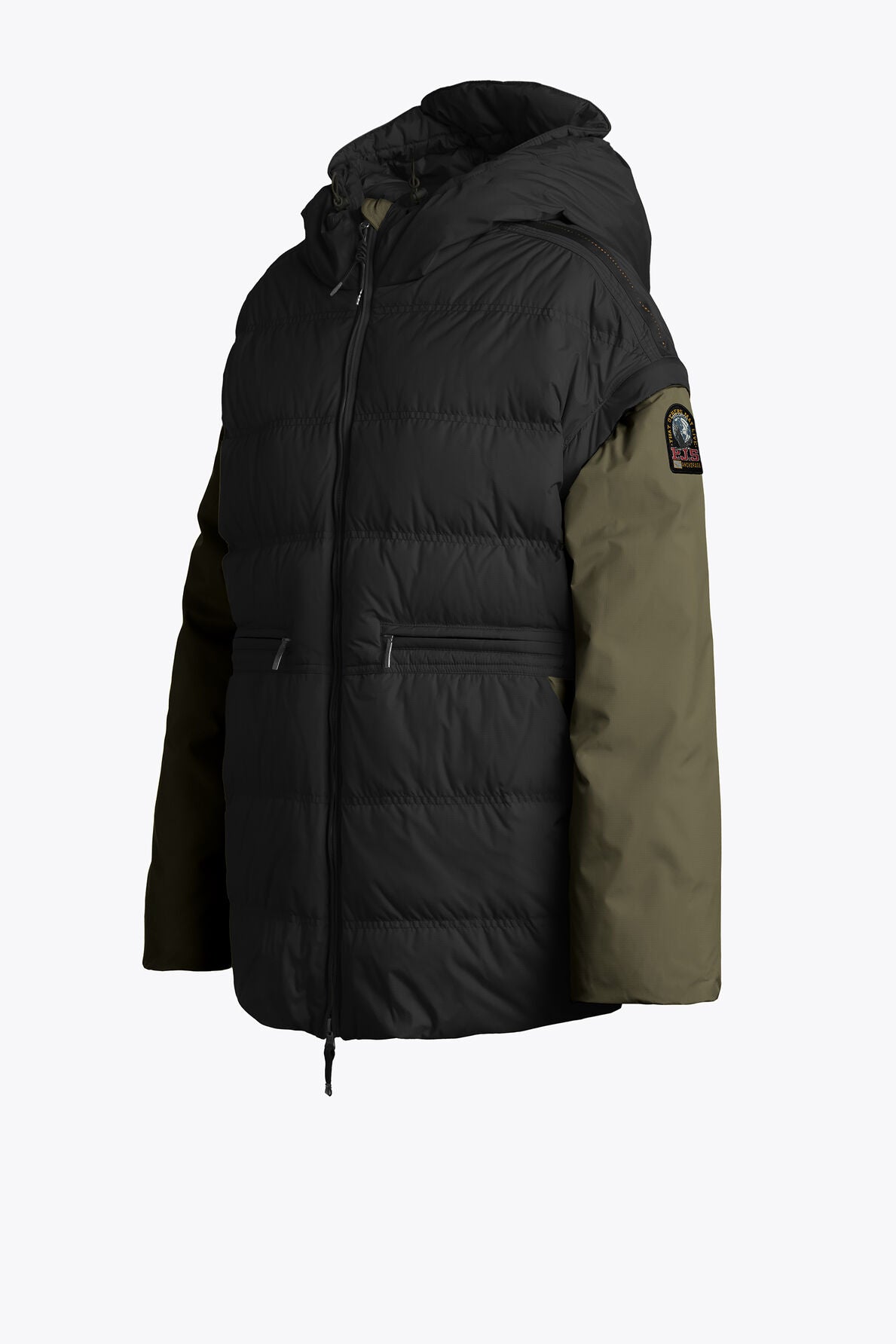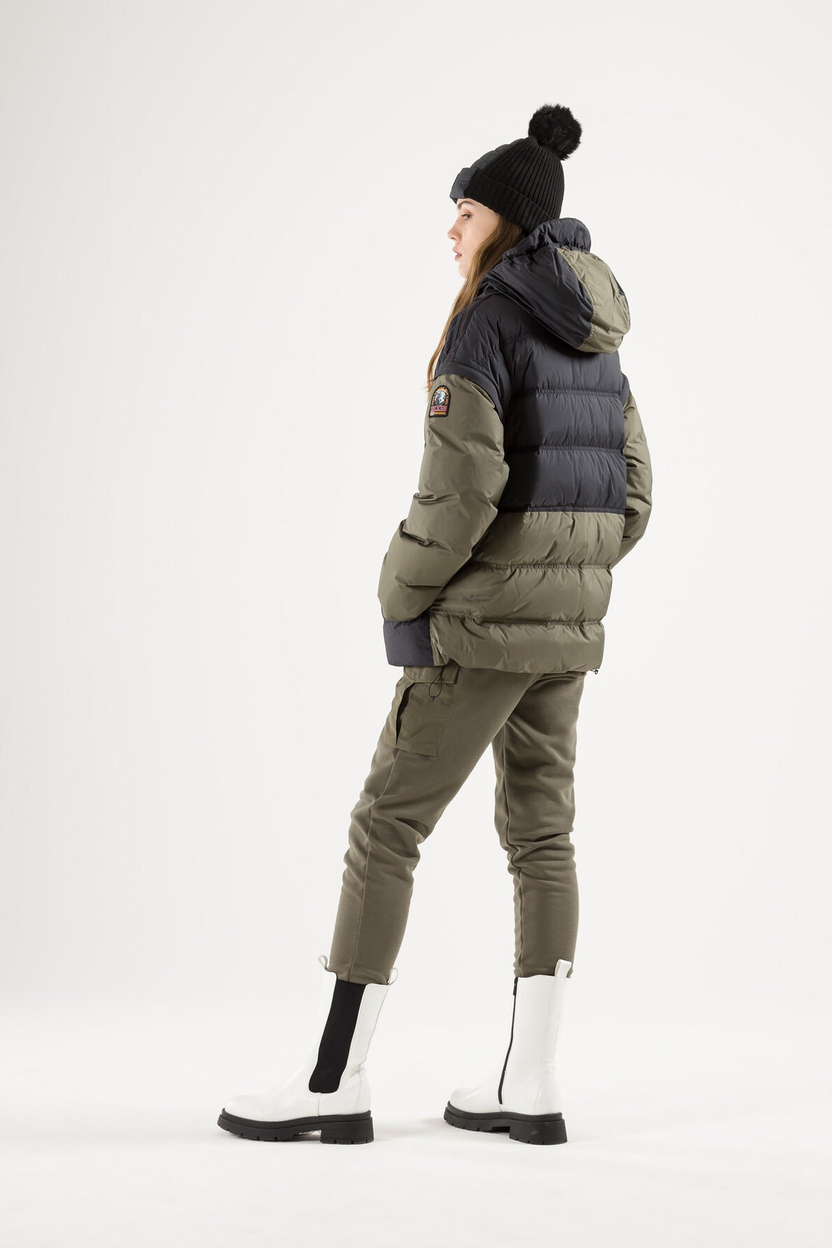 The fabric is a 100% biodegradable nylon ripstop. Filling is 90% duck down – 10% duck feathers. This jacket has a hood adjustable by means of drawstring and a two-way zipper. It features two zippered front pockets, two pockets, one inner mesh pocket, zippered detachable sleeves. Bottom adjustable by means of drawstring. It features iconic details such as the yellow elastic strap and the patch.