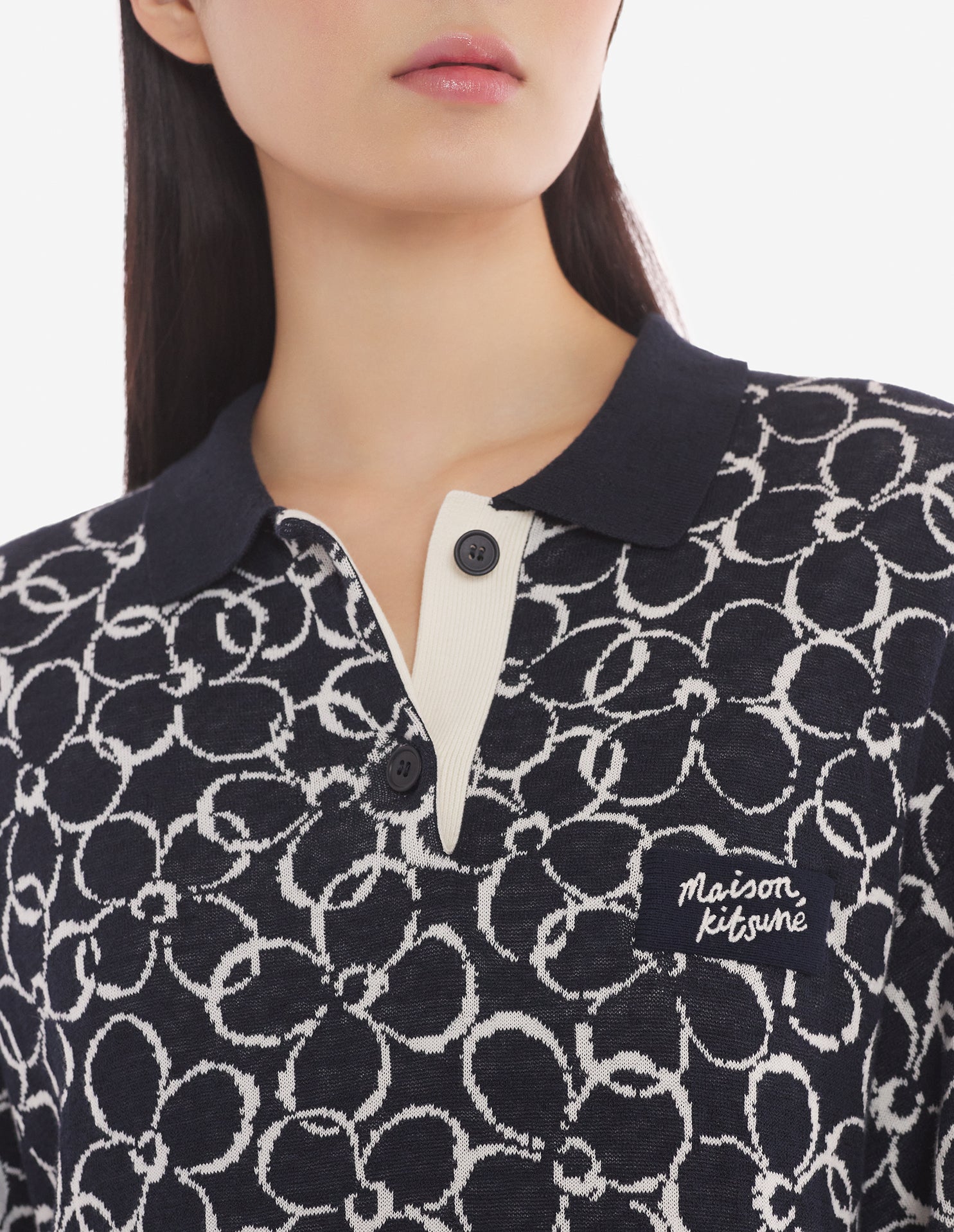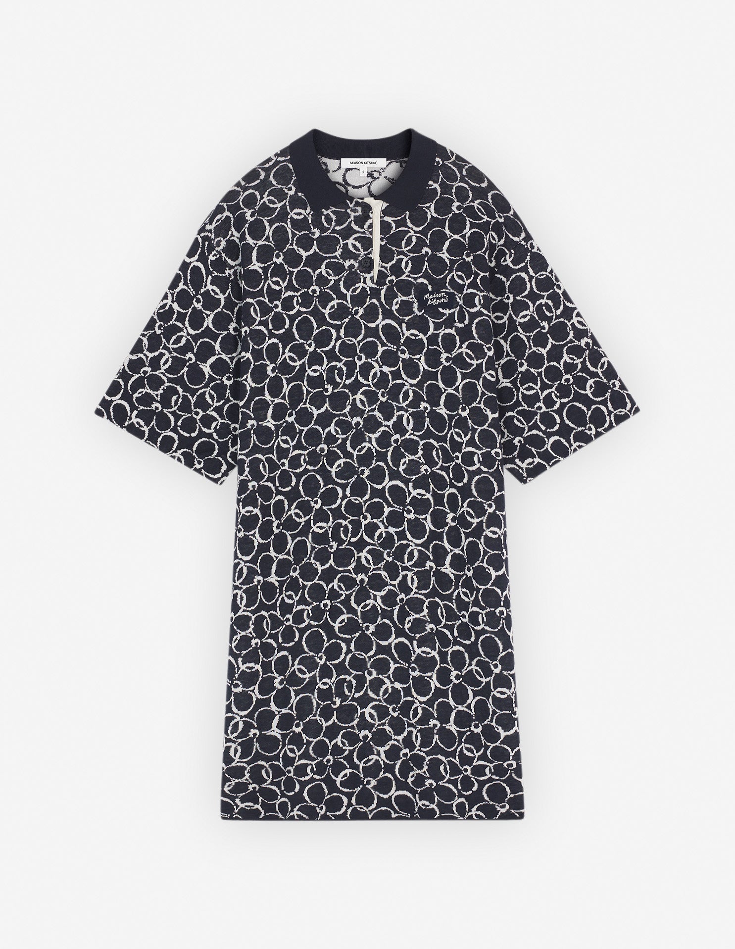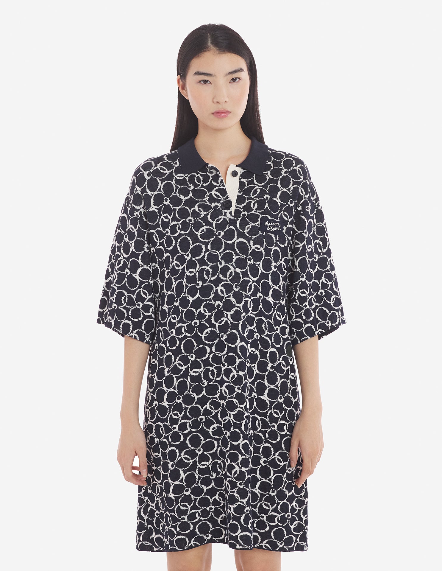 Abstract Daisy Jacquard Polo Dress Ink Blue