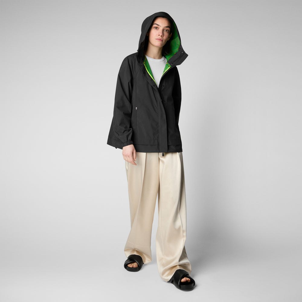 Our Suki jacket merges lightweight, sport-inspired design with practical functionality. It features a brim-shaped hood, interior contrasting lamination, and taped seams for enhanced protection. The jacket's sleek exterior boasts two side zipped pockets, and a chest pocket concealed beneath the buttoned placket. A drawstring hem and elasticated cuffs ensure a custom fit, while custom zip pullers and our signature green logo on the left sleeve add distinctive finishing touches.