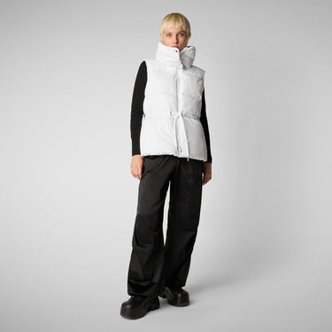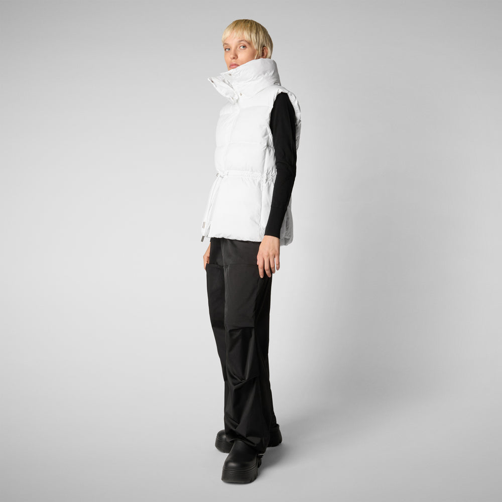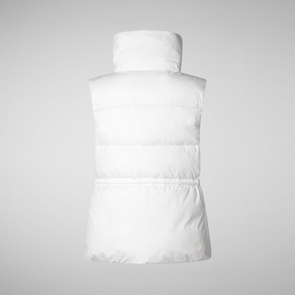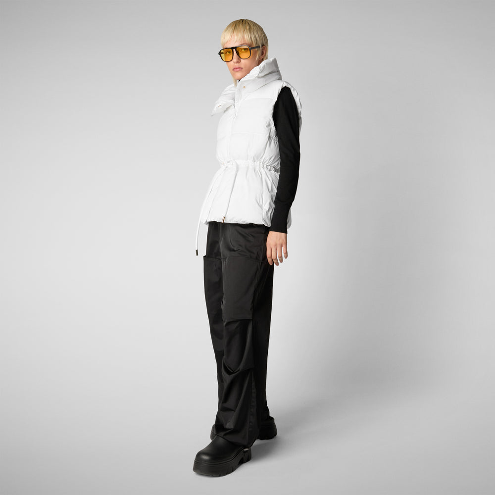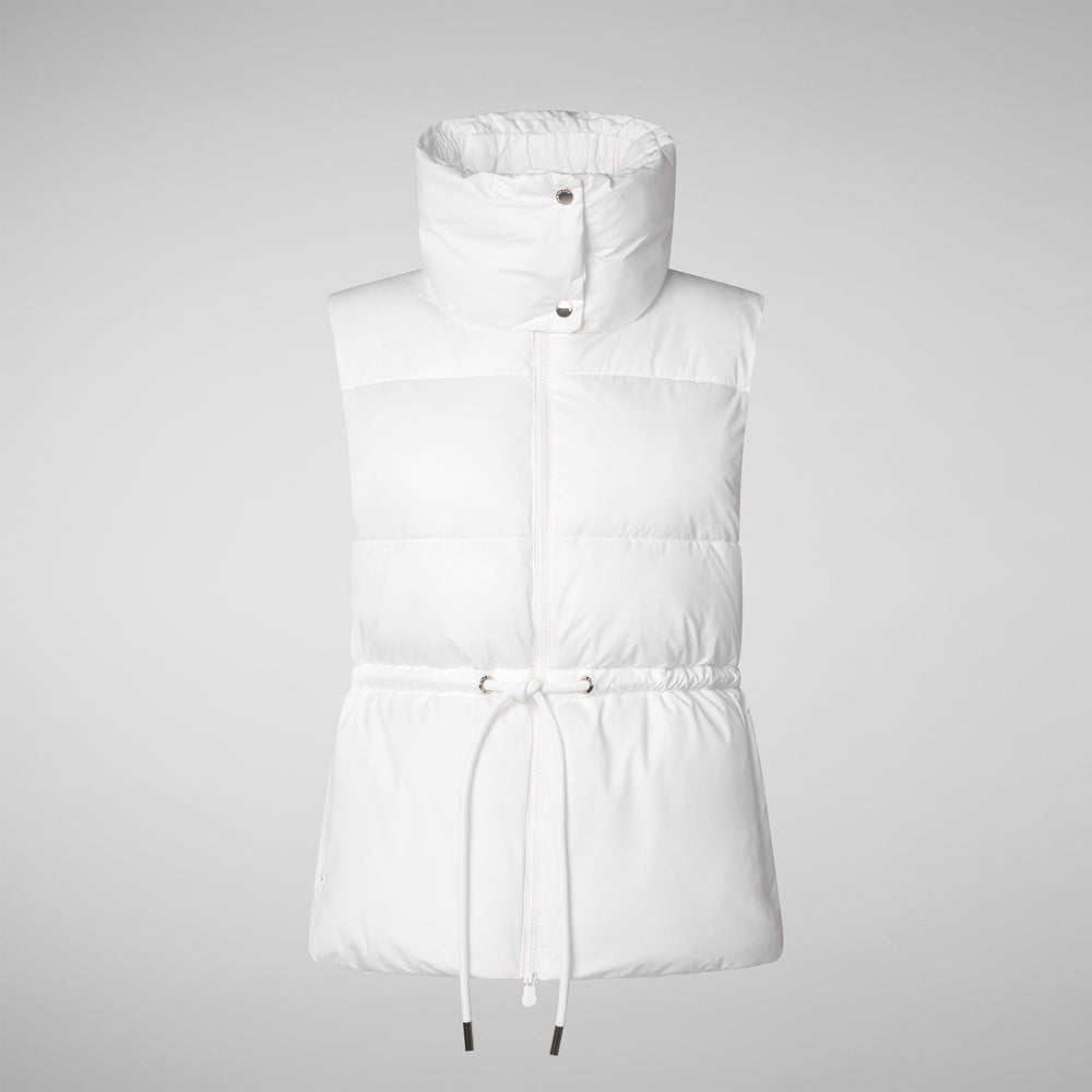 Looking for a reliable companion for layering season? Look no further than our Ren puffer vest, where animal-free comfort meets recycled materials. Accented by light gold details, this design features a high neck fastened by two snap buttons. The adjustable drawstring at the waist provides a snug, personalized fit.