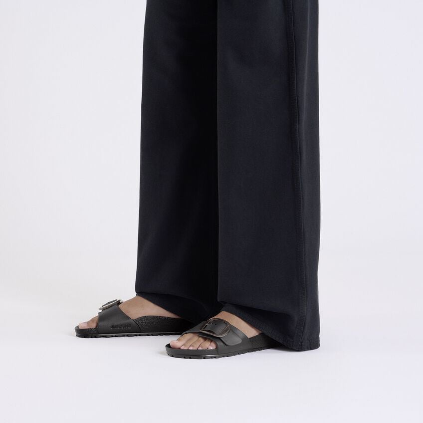 This is a new and modern interpretation of the BIRKENSTOCK classic Madrid. This version features our popular Big Buckle made from a stainless synthetic material and makes an impression with its durability and minimalist design. Modeled on the cork sandal, it is made from the ultra-lightweight and highly flexible synthetic material EVA. The high-quality, odor-neutral EVA has been tested for harmful substances and combines numerous positive attributes: it is very light, highly elastic, shock-absorbent, water-resistant, and skin-friendly.