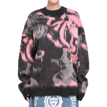 A lava lamp in which the colors and the fluid and vibrant shapes are mixed, is where the new Magma print, the graphic zenith of the collection, and the brocade which are the protagonists of the MSGM metaverse are born. Mohair wool sweater with long sleeves.