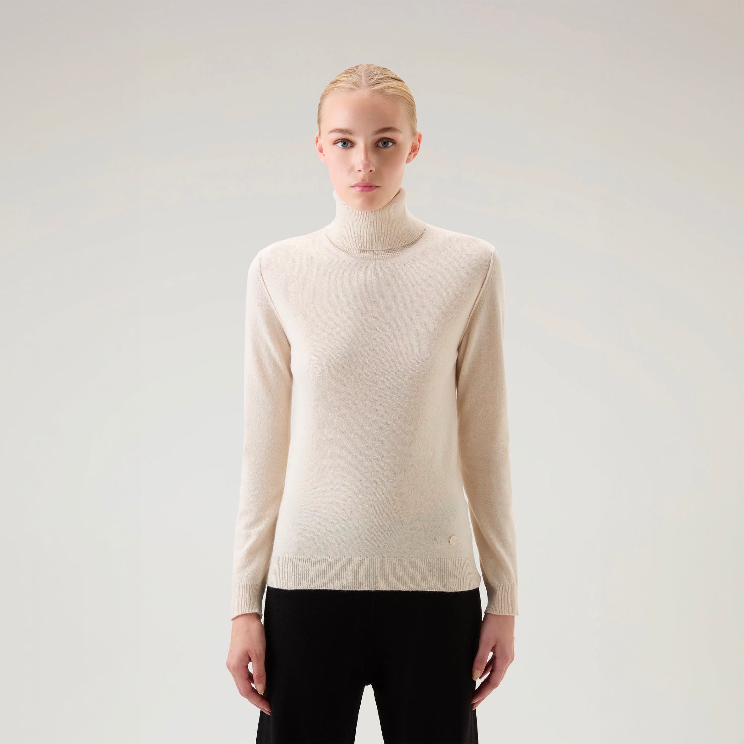 A seasonal classic, the turtleneck sweater is truly a versatile piece. Perfect with jeans or a skirt, this garment is made from a blend of wool and cashmere for extreme softness. Its modern silhouette is complemented by ribbed collar, cuffs, and hem for a flawless fit.